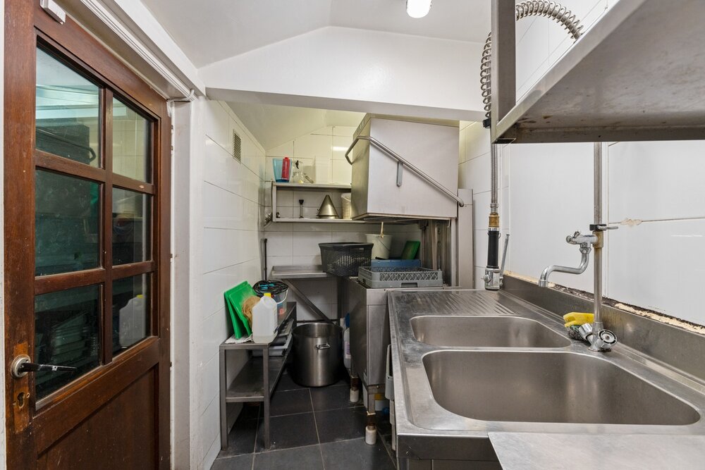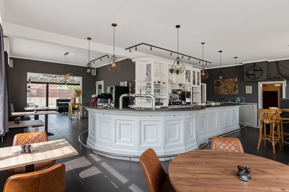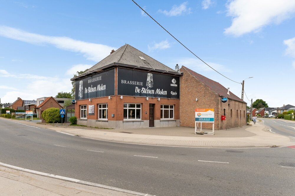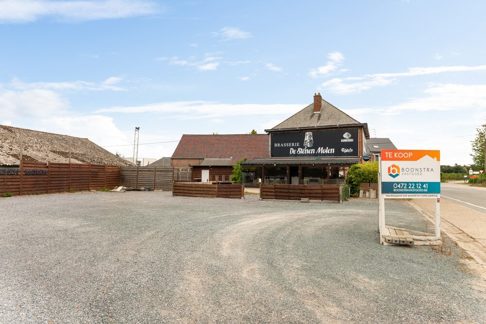 Het handelsgelijkvloers wordt momenteel uitgebaat als restaurant. U beschikt hier vooraan over een handelsruimte voorzien van een toog, een geheel ingerichte veranda en een ruim terras. Verder is het pand ook voorzien van een volledig ingerichte keuken. Verder omvat het gelijkvloers nog voldoende opbergruimte en een aparte feestzaal. De bovenliggende woonst is bereikbaar via een aparte inkom. Hier beschikt u over een ruime leefruimte met veel lichtinval door de grote raampartijen. Deze kunt u inrichten met een gezellige zithoek en een aparte eetplaats. Verder geeft de hal ons hier nog toegang tot de badkamer uitgerust met lavabo, ligbad en voorziening voor wasmachine. U beschikt over voldoende parkeermogelijkheden op de ruime parking. Het handelsfonds is mogelijks mee over te nemen.