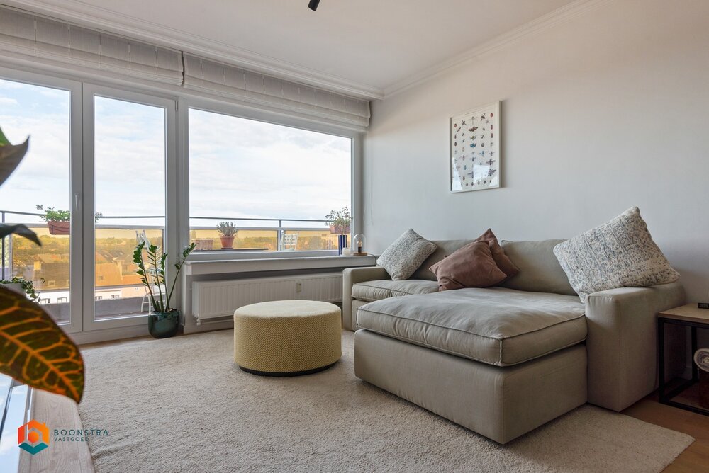 Het appartement bevindt zich op de zesde verdieping, waardoor u kan genieten van een prachtig uitzicht over de stad. We betreden het appartement via de inkomhal met vestiaire en apart gastentoilet. De ruime leefruimte geniet van veel lichtinval door de grote raampartijen. Deze kan u inrichten met een gezellige zithoek en een aparte eetplaats. Aansluitend vindt u de keuken, voorzien van kwalitatieve toestellen. Het ruime terras aan de voorzijde met uitzicht op de Dijle betreden via de leefruimte en keuken, een plek om even helemaal weg te dromen. Via de nachthal bereikt u de badkamer met lavabo, douche en aansluiting voor was- en droogmachine. Het appartement beschikt verder over 2 slaapkamers, waarvan één directe toegang heeft tot het tweede, zuidwest-georiënteerde terras met een prachtig zicht op de Sint-Romboutstoren. Verder geniet u hier nog van een aparte kelderberging en een gemeenschappelijke tuin waar u steeds in alle rust kan genieten van het mooie weer.