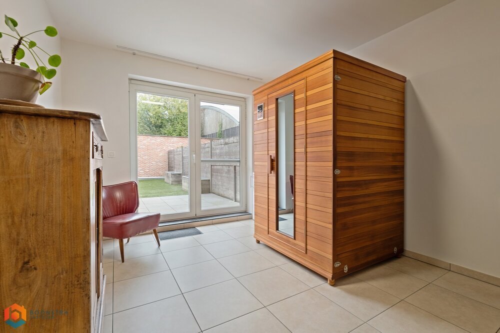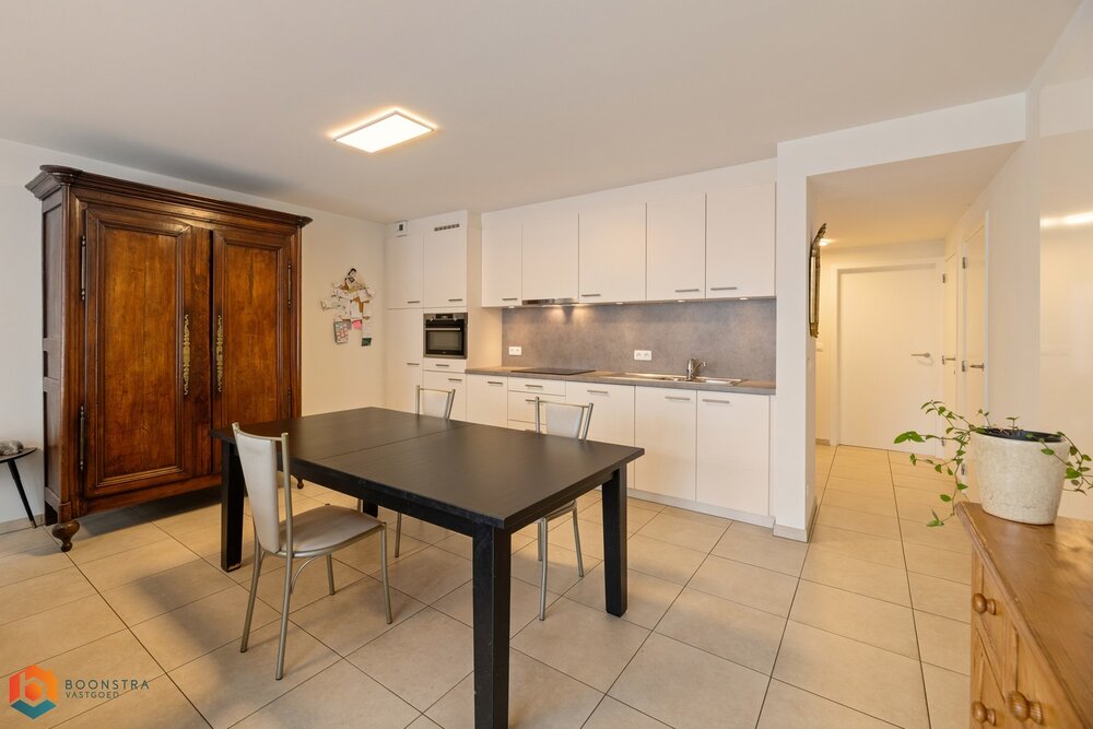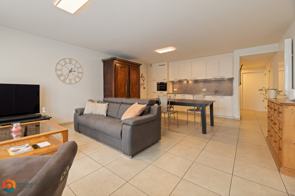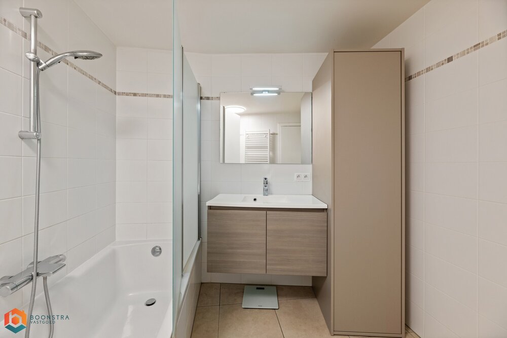 We betreden het appartement via de lichtrijke leefruimte, deze kunt u inrichten met een gezellige zithoek en een aparte eetplaats. De open keuken is mooi geïntegreerd in het geheel en voorzien van kwalitatieve toestellen. De nachthal geeft ons verder toegang tot 2 slaapkamers, apart toilet, berging en de badkamer, uitgerust met een lavabo en een baddouche. Tot slot beschikt u nog over een kelderberging en kan u in de ruime tuin met terras in alle rust en privacy genieten van het goede weer. Het appartement is voorzien van een ondergrondse staanplaats die mee aangekocht dient te worden voor €25.000.