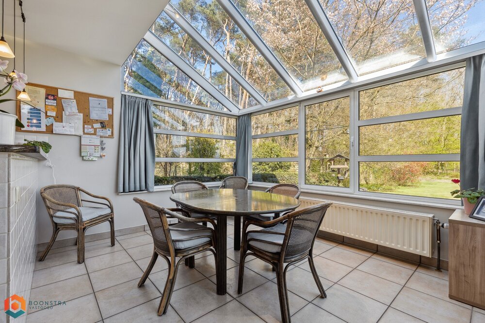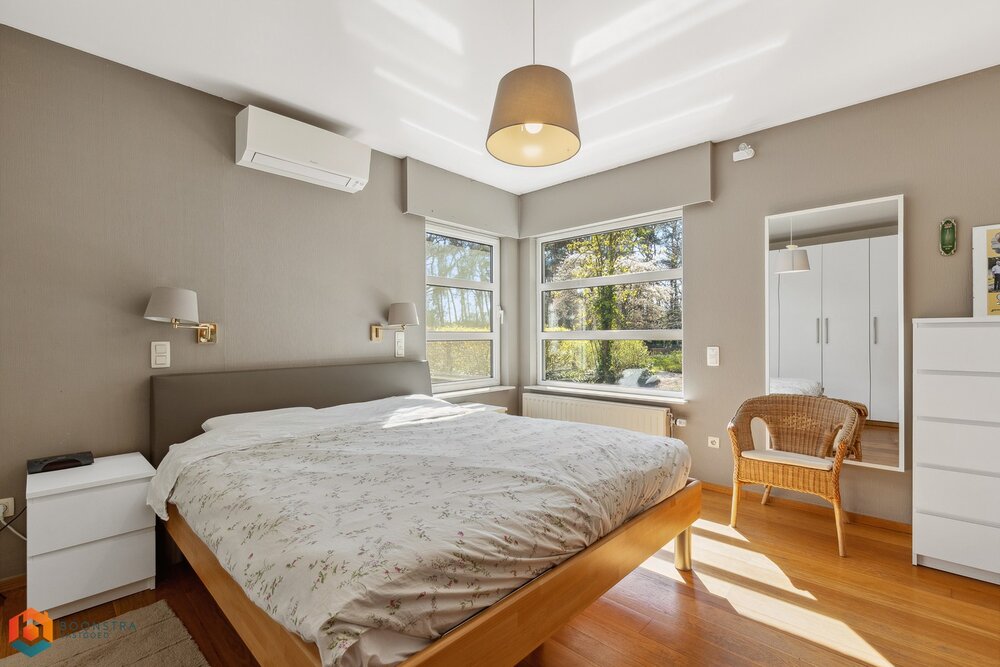 We betreden de woning via de inkomhal met apart gastentoilet en vestiaire. De ruime leefruimte geniet van erg veel lichtinval door de grote raampartijen. U kunt deze inrichten met een gezellige zithoek en een aparte eetplaats met fantastisch uitzicht op de uitgestrekte tuin. Een speksteenkachel zorgt daarbij voor extra sfeer en gezelligheid. De aangrenzende keuken is mooi geïntegreerd in het geheel en voorzien van de voornaamste, kwalitatieve toestellen. Op het gelijkvloers beschikt u verder nog over een inpandige garage voor 2 wagens en een eerste slaapkamer met ensuite badkamer, voorzien van douche, ligbad, dubbele lavabo en toilet. De nachthal op de eerste verdieping geeft ons toegang tot 4 slaapkamers (waarvan 1 met dakterras) en een polyvalente kantoorruimte. Verder beschikt deze verdieping nog over een apart toilet en een badkamer uitgerust met douche, ligbad en lavabo. Tot slot is dit pand voorzien van een ruime kelderverdieping met wasplaats, 2 polyvalente ruimtes, koele berging en een kruipruimte. In de natuurlijke tuin met groot aangelegd terras kunt u steeds in alle rust en privacy genieten van het mooie weer. Deze woning beschikt over 29 zonnepanelen, airco en een alarminstallatie. Tenslotte biedt de ruime oprit voldoende parkeermogelijkheden.