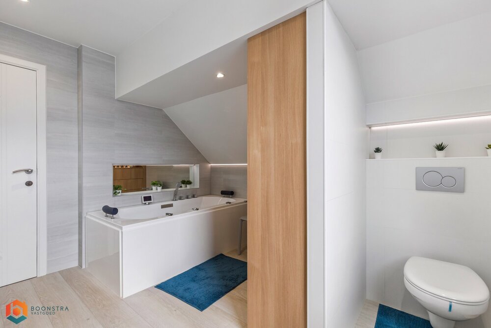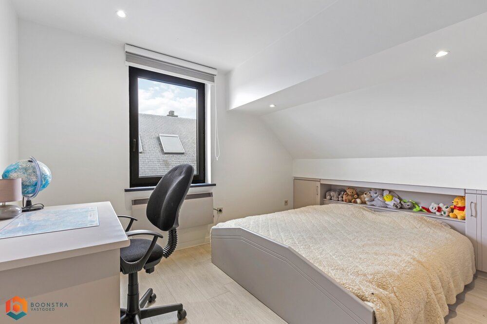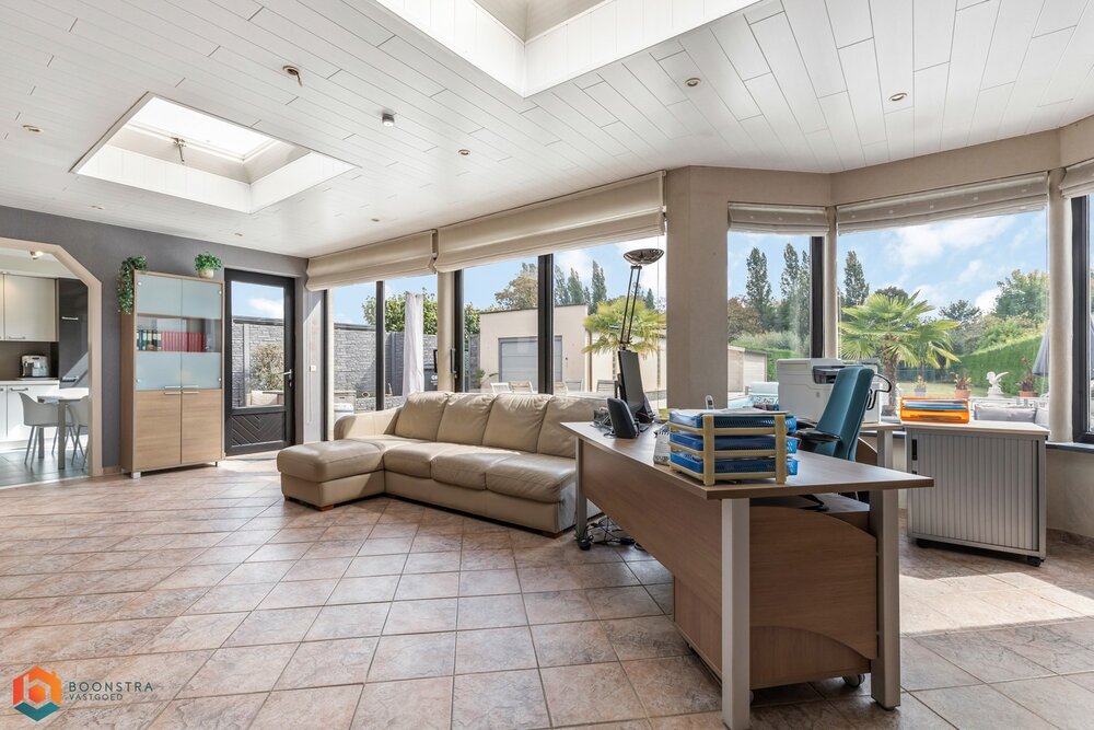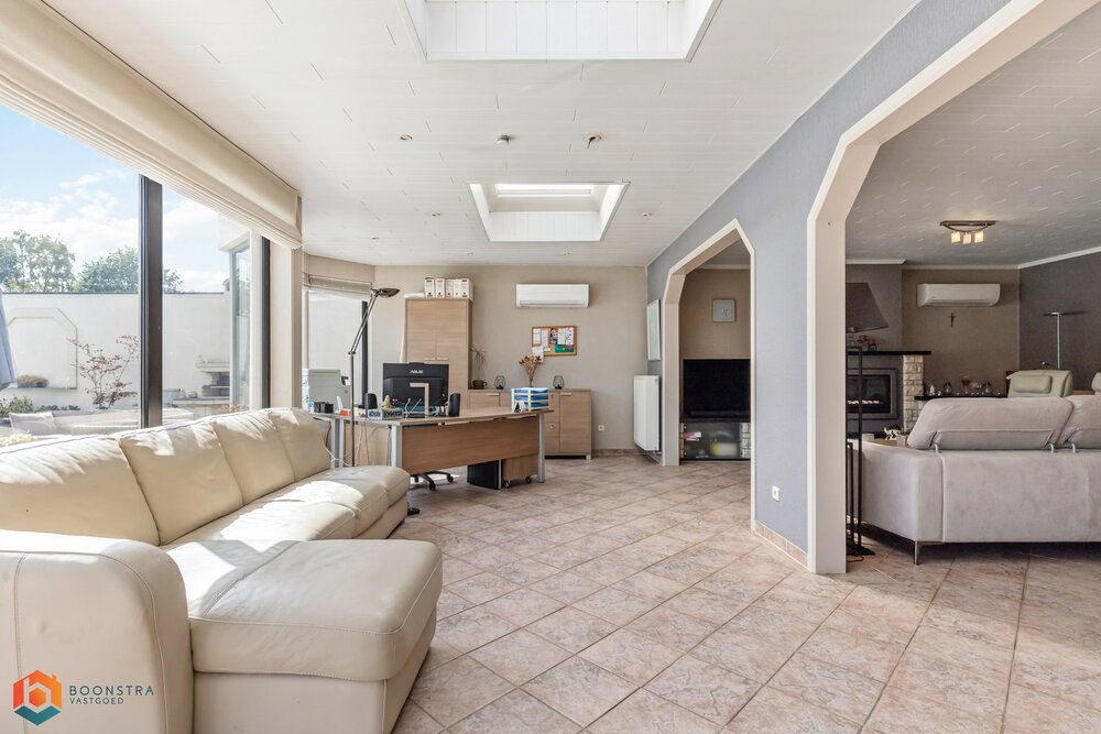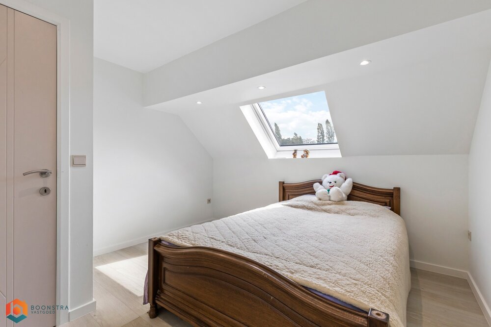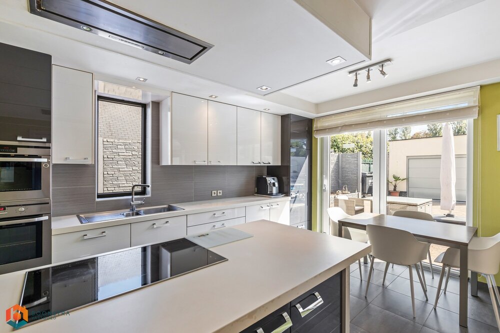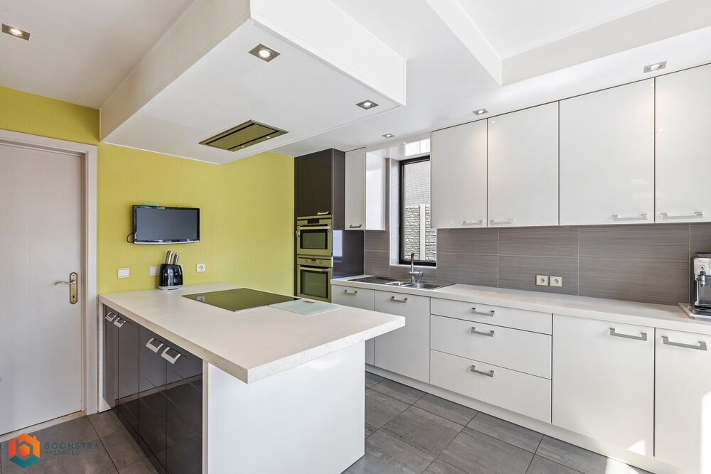 We betreden de woning via de inkomhal met apart gastentoilet en vestiaire. De ruime leefruimte geniet van erg veel lichtinval door de grote raampartijen en is voorzien van airco. U kunt deze inrichten met een gezellige zithoek, een aparte eetplaats en een tweede woonkamer met fantastisch uitzicht op de tuin. De aangrenzende keuken is mooi geïntegreerd in het geheel en voorzien van de voornaamste, kwalitatieve toestellen. Op het gelijkvloers beschikt u verder nog over een wasplaats met douche mogelijkheid, een inpandige garage en een eerste slaapkamer. De nachthal op de eerste verdieping geeft ons toegang tot 4 slaapkamers waarvan de master-bedroom voorzien is van airco. Verder beschikt deze verdieping nog over een recent vernieuwde badkamer uitgerust met wellnessbad, lavabo en toilet. De ganse eerste verdieping werd recent geheel opgefrist. In de ruime tuin met zwembad en groot aangelegd terras kunt u steeds in alle rust en privacy genieten van het mooie weer. Deze woning beschikt over 24 zonnepanelen, airco een extra garage en een tuinhuis. Tenslotte biedt de ruime oprit voldoende parkeermogelijkheden.