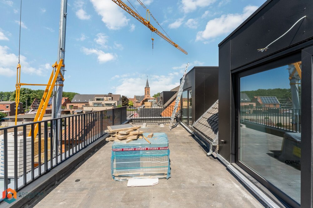 Deze penthouse bevindt zich op de bovenste verdieping van het gebouw. De ruime leefruimte zal van veel lichtinval genieten door de grote raampartijen. Hier kunt u een gezellige zithoek en aparte eetplaats inrichten. De open keuken is mooi geïntegreerd in het geheel en standaard voorzien van kwalitatieve toestellen. Verder beschikt u nog over een aparte berging, grenzend aan de keuken. De nachthal geeft ons toegang tot een apart toilet, 2 slaapkamers en de volledig ingerichte badkamer. Op het schitterende terras kunt u steeds in alle rust en privacy genieten van het mooie weer. U dient ook een ondergrondse staanplaats en kelderberging bij aan te kopen.
