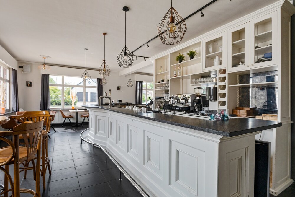 Momenteel is het gelijkvloers ingericht als restaurant, uitgerust met een volledig ingerichte keuken, toog, veranda en een ruim terras. Hier beschikt u dus over meerdere grote ruimtes die perfect kunnen worden heringericht tot een comfortabele en eigentijdse woning. Denk hierbij aan een lichtrijke leefruimte, open keuken met eetplaats, bureauruimte, hobby- of speelkamer en meerdere bergingen. De bovenliggende woonst is bereikbaar via een aparte inkom. Hier beschikt u momenteel al over een ruime leefruimte met veel lichtinval en een badkamer uitgerust met lavabo, ligbad en voorziening voor wasmachine.