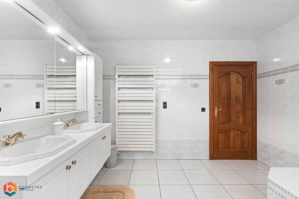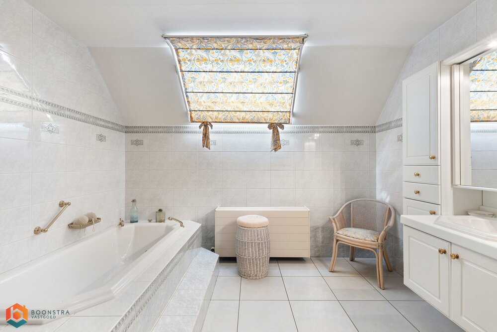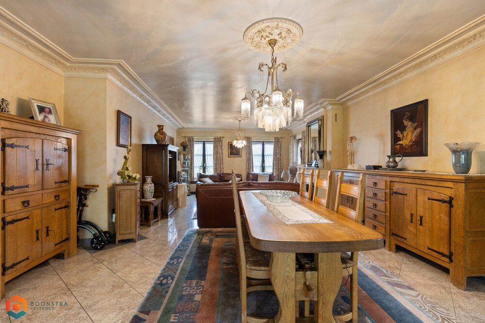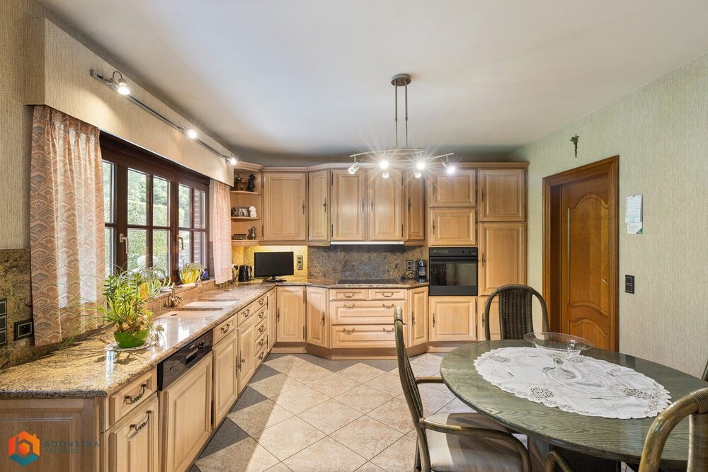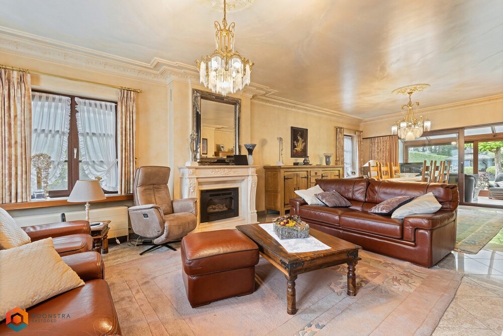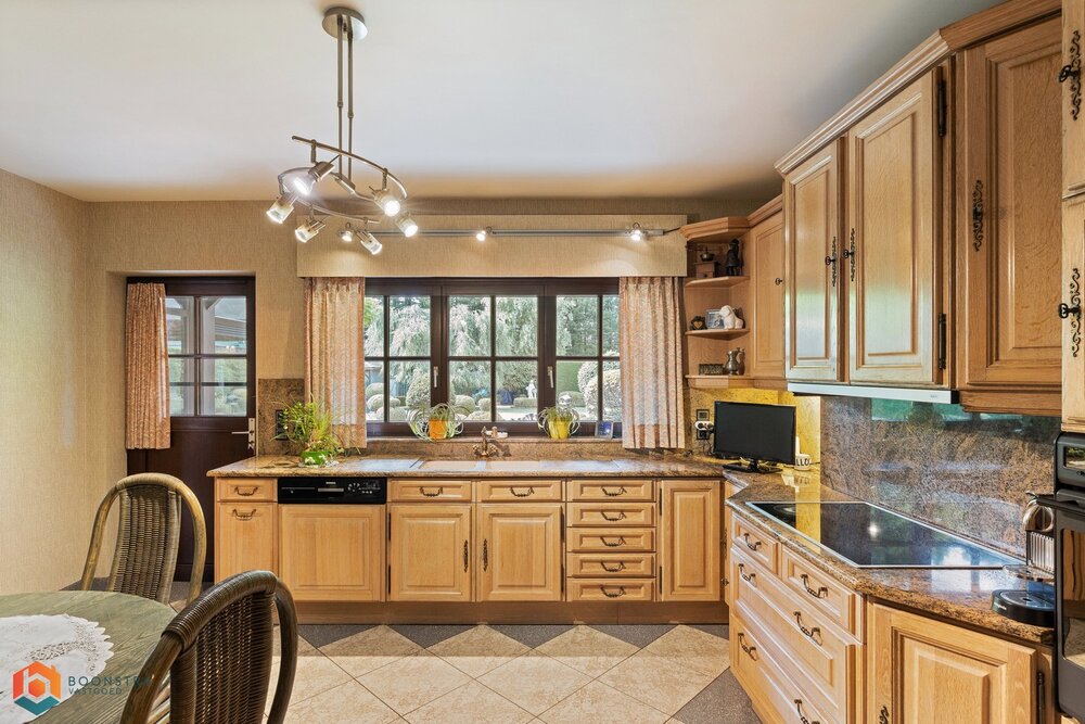 We betreden de woning via de inkomhal met vestiaire. De leefruimte geniet van veel lichtinval door de vele raampartijen en kunt u inrichten met een gezellige zithoek, voorzien van een gezellige haard, en een aparte eetplaats. Achter de woonkamer beschikt u verder nog over een lichtrijke veranda met een mooi uitzicht op de geheel aangelegde tuin. De ruime keuken is aangrenzend aan de woonkamer en voorzien van de voornaamste toestellen. U beschikt verder op het gelijkvloers nog over een wasplaats met badkamer met douche en lavabo, een apart toilet, een berging en een dubbele inpandige garage. De nachthal op de eerste verdieping geeft ons toegang tot de 4 ruime slaapkamers, de badkamer met ligbad en dubbele lavabo en een apart toilet. De zolder is bijzonder ruim en kan gebruikt worden als extra opbergruimte. In de leuke tuin kunt u steeds in alle rust en privacy genieten van het mooie weer. Vooraan de woning beschikt u over voldoende parkeermogelijkheden.