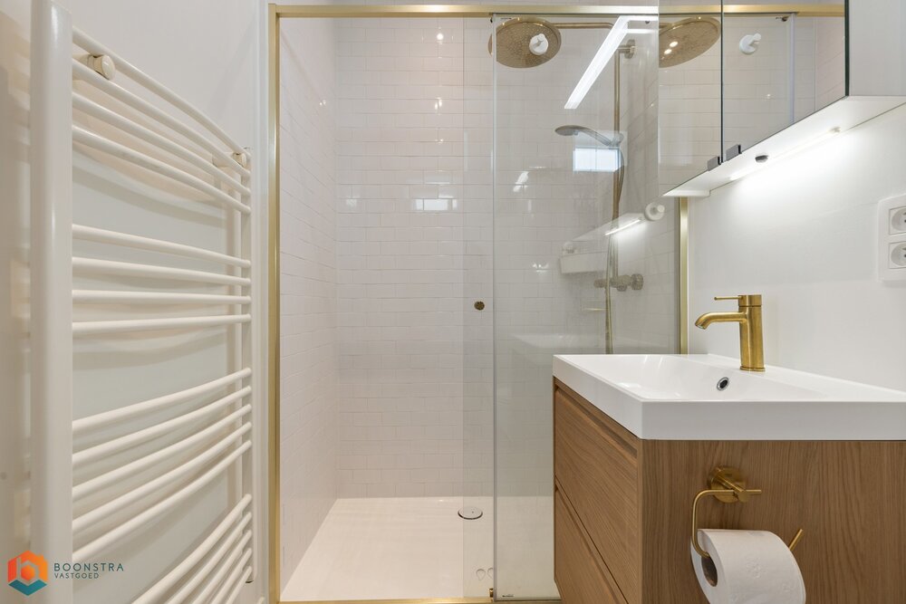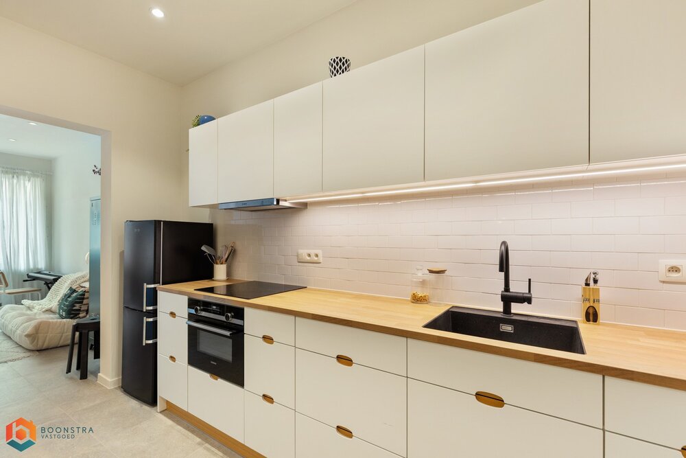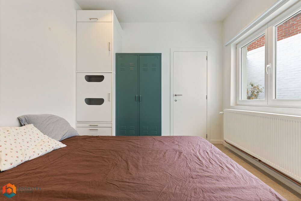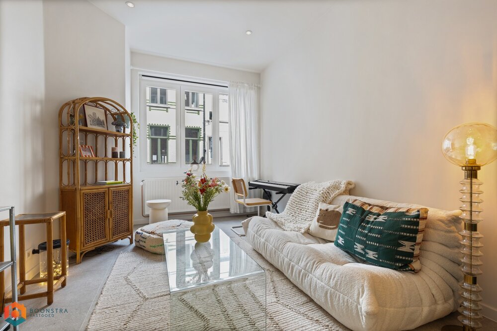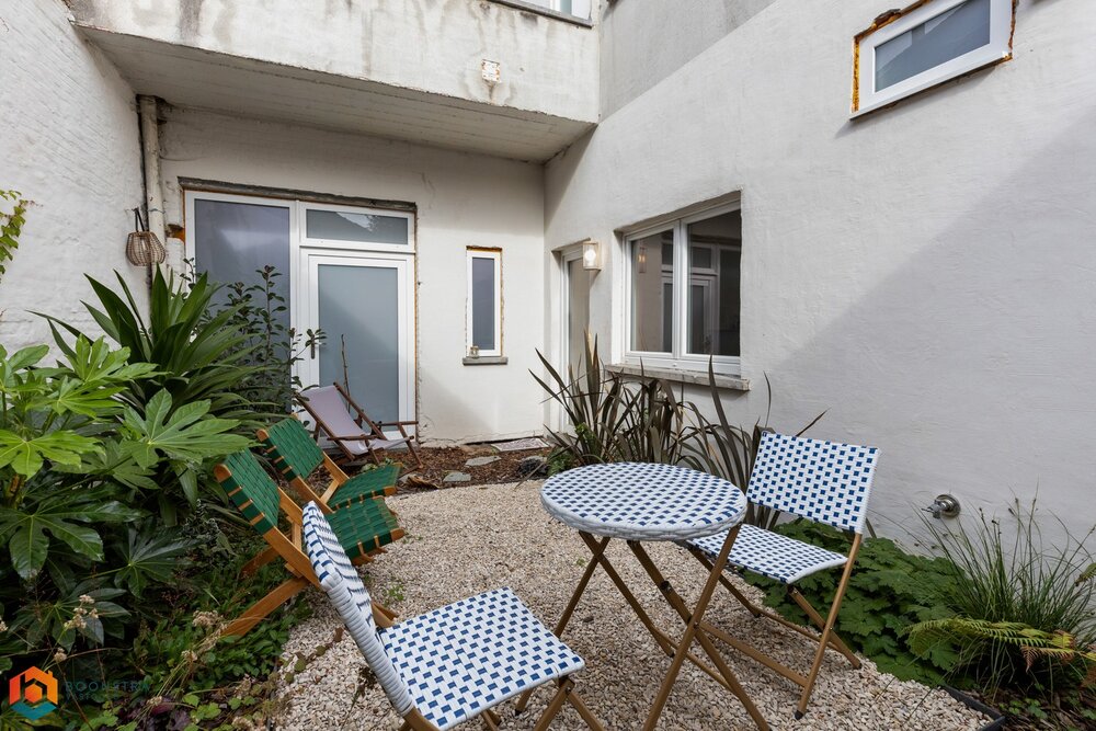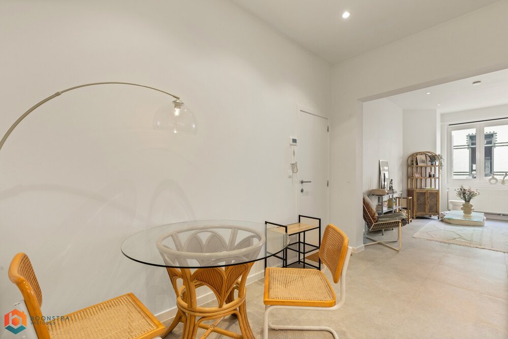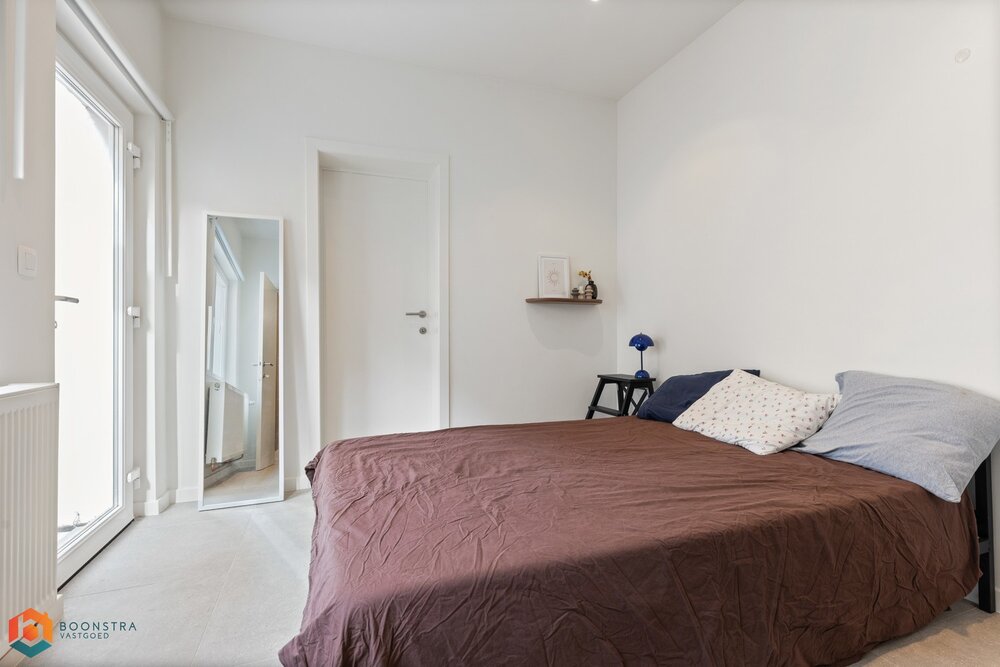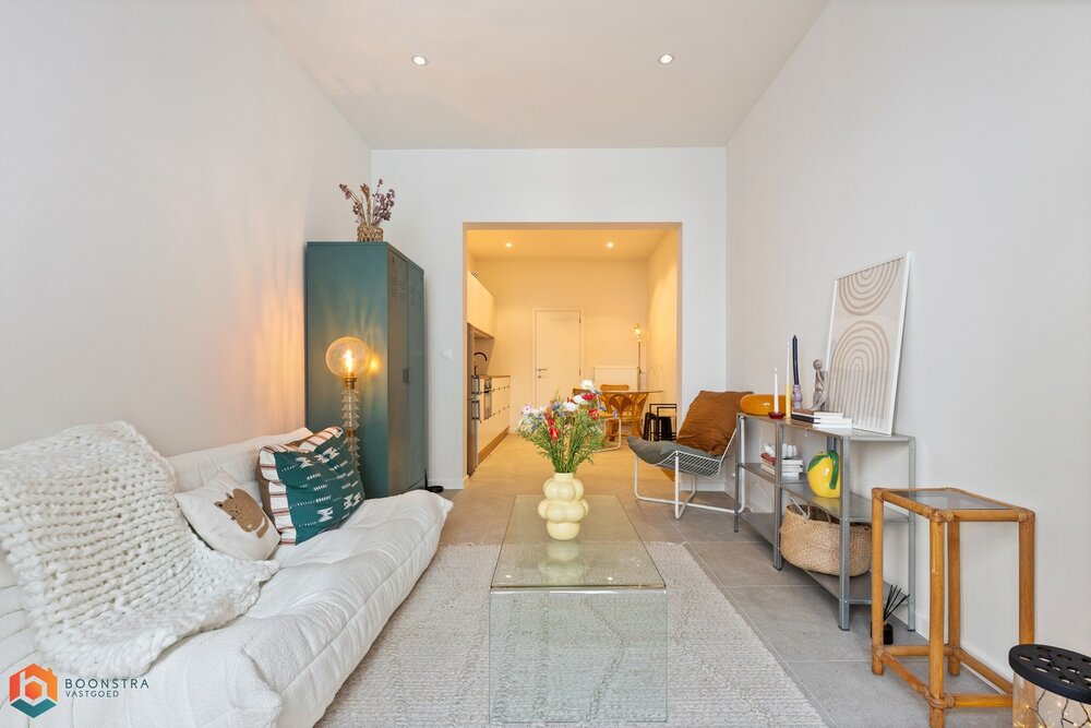 De ruime leefruimte kunt u inrichten met een aparte zithoek en eetplaats. Hier is de prachtige keuken mooi geïntegreerd in het geheel en voorzien van uiterst kwalitatieve toestellen. U geniet hier ook van veel lichtinval door de grote raampartijen. Het appartement beschikt daarnaast ook over een slaapkamer met ingebouwde kast voor de wasmachine. Aansluitend kan men de badkamer vinden, deze is uitgerust met lavabo, toilet en inloopdouche. In de leuke zuidgerichte stadstuin kunt u steeds in alle rust en privacy genieten van het mooie weer. De gemeenschappelijke maandelijkse kosten bedragen amper 35 euro. Dit prachtige appartement is meteen beschikbaar.