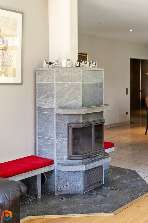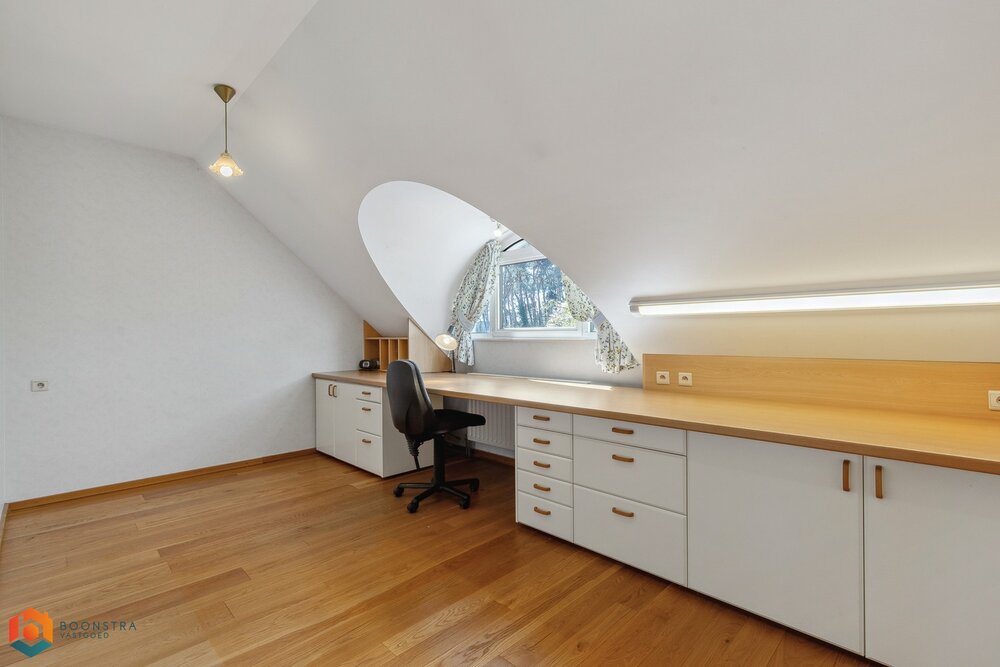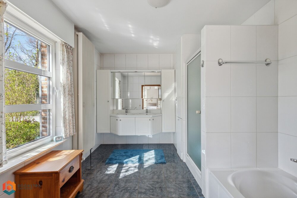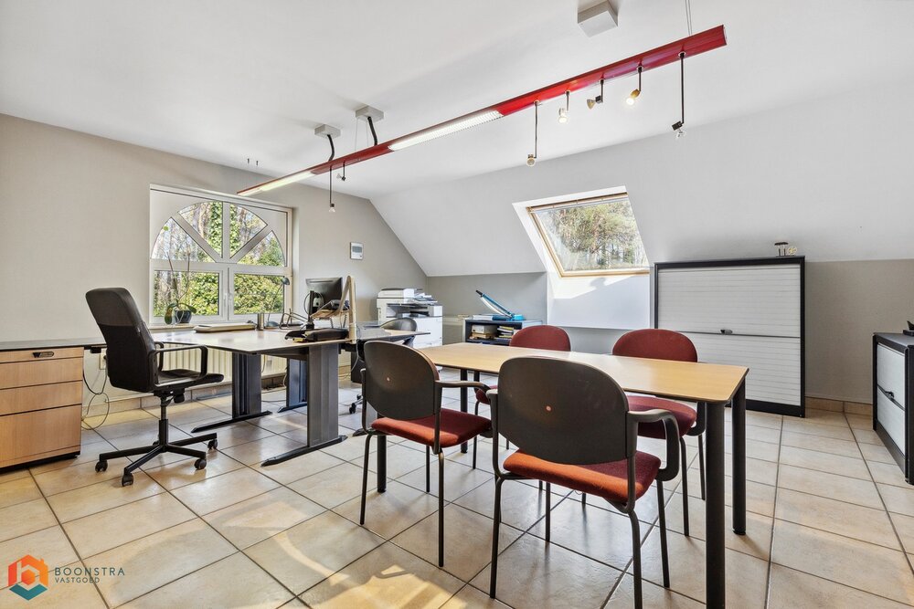 We betreden de woning via de inkomhal met apart gastentoilet en vestiaire. De ruime leefruimte geniet van erg veel lichtinval door de grote raampartijen. U kunt deze inrichten met een gezellige zithoek en een aparte eetplaats met fantastisch uitzicht op de uitgestrekte tuin. Een speksteenkachel zorgt daarbij voor extra sfeer en gezelligheid. De aangrenzende keuken is mooi geïntegreerd in het geheel en voorzien van de voornaamste, kwalitatieve toestellen. Op het gelijkvloers beschikt u verder nog over een inpandige garage voor 2 wagens en een eerste slaapkamer met ensuite badkamer, voorzien van douche, ligbad, dubbele lavabo en toilet. De nachthal op de eerste verdieping geeft ons toegang tot 4 slaapkamers (waarvan 1 met dakterras) en een polyvalente kantoorruimte. Verder beschikt deze verdieping nog over een apart toilet en een badkamer uitgerust met douche, ligbad en lavabo. Tot slot is dit pand voorzien van een ruime kelderverdieping met wasplaats, 2 polyvalente ruimtes, koele berging en een kruipruimte. In de natuurlijke tuin met groot aangelegd terras kunt u steeds in alle rust en privacy genieten van het mooie weer. Deze woning beschikt over 29 zonnepanelen, airco en een alarminstallatie. Tenslotte biedt de ruime oprit voldoende parkeermogelijkheden.