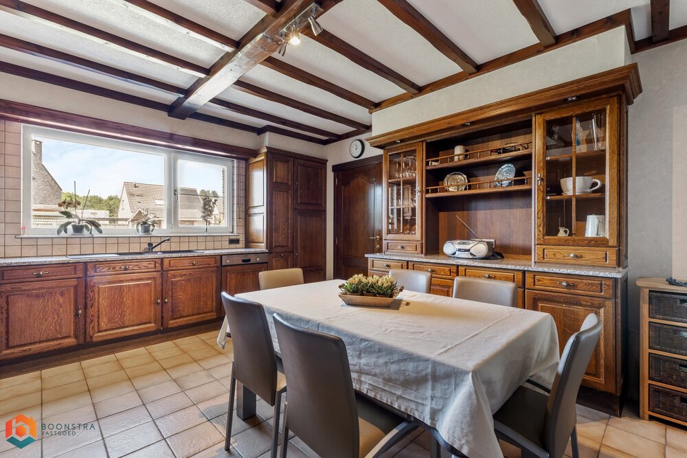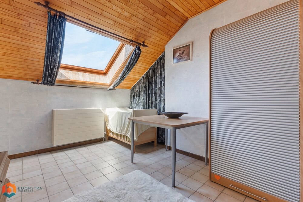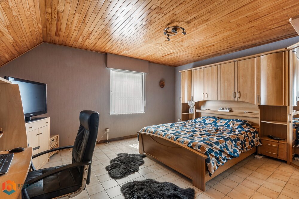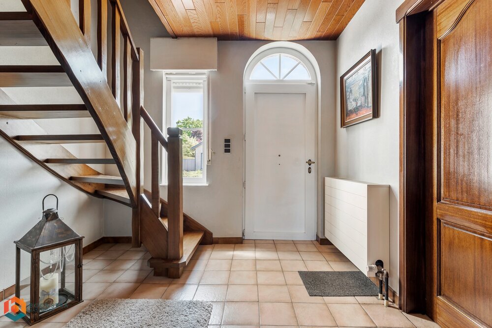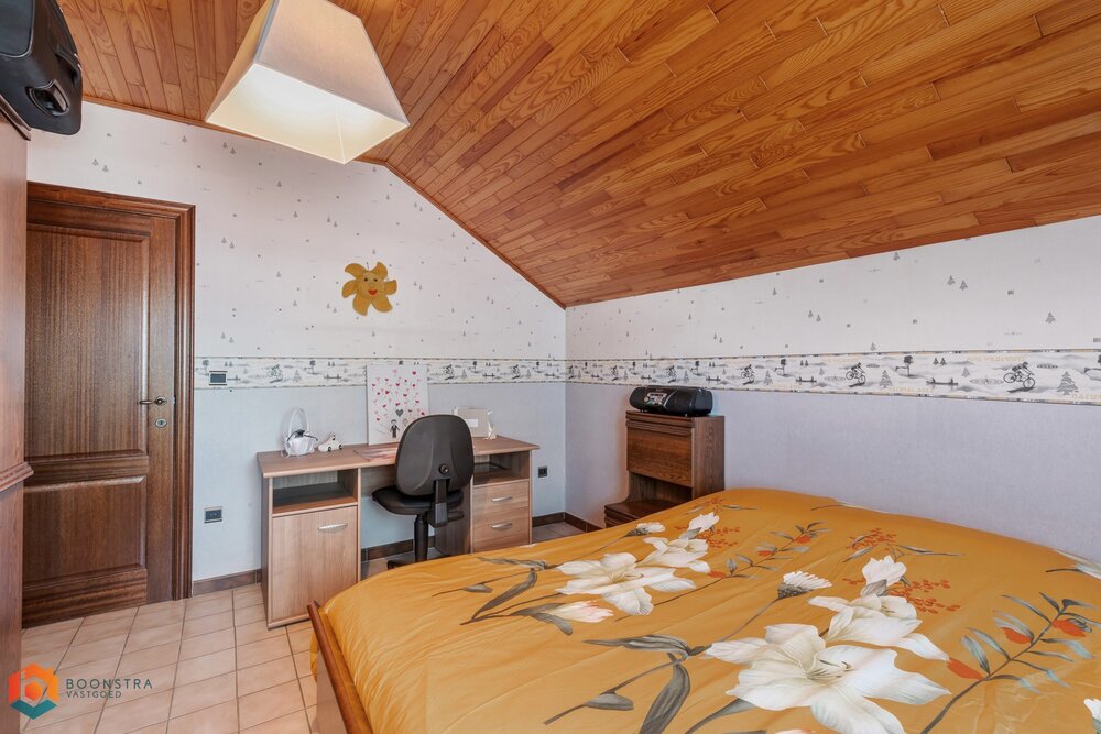 We betreden de woning via de inkomhal. De leefruimte geniet van veel lichtinval door de vele raampartijen en kunt u inrichten met een gezellige zithoek, voorzien van een gezellige haard en aparte eetplaats. Van hieruit hebt u ook een mooi zicht op de leuke tuin. De ruime keuken is voorzien van de voornaamste toestellen, met aangrenzend een aparte ruime berging. U beschikt verder op het gelijkvloers nog over een badkamer met bad, douche en lavabo en een ruime inpandige garage. De nachthal op de eerste verdieping geeft ons toegang tot de 4 ruime slaapkamers en een apart toilet. De zolder is ruim en wordt gebruikt als extra opbergruimte. In de leuke tuin kunt u steeds in alle rust en privacy genieten van het mooie weer. Vooraan de woning beschikt u over voldoende parkeermogelijkheden.