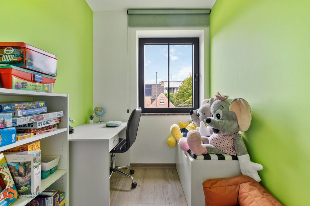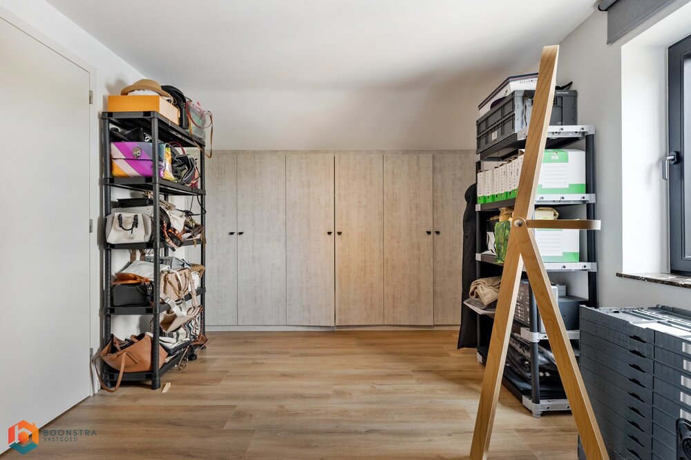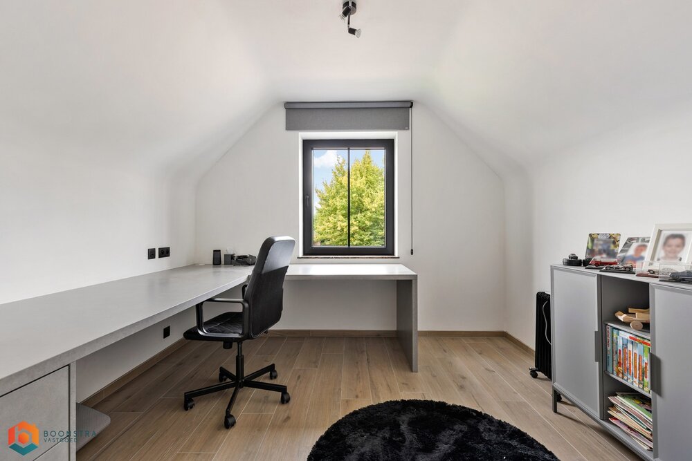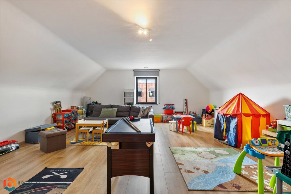 Via een vaste trap bereiken we de zeer ruime afgewerkte zolder dewelke je kan inrichten tot 2 extra slaapkamers of ruime hobbykamer.