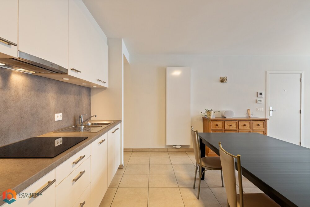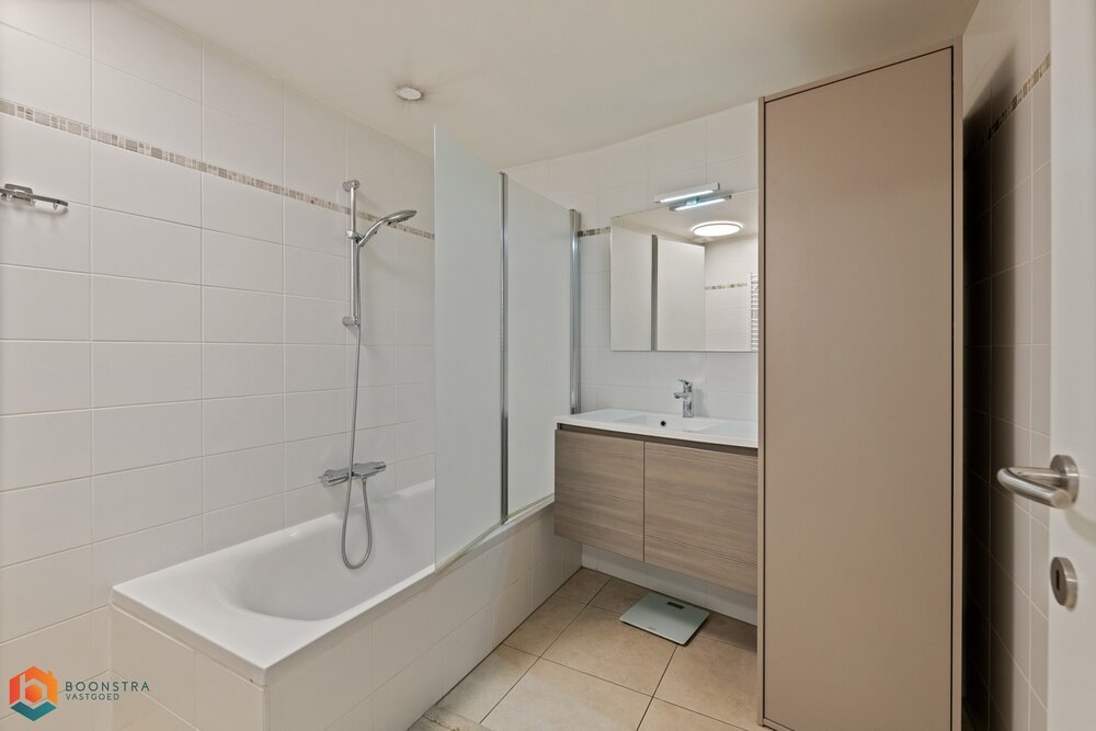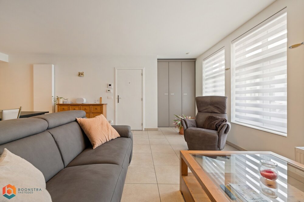 We betreden het appartement via de lichtrijke leefruimte, deze kunt u inrichten met een gezellige zithoek en een aparte eetplaats. De open keuken is mooi geïntegreerd in het geheel en voorzien van kwalitatieve toestellen. De nachthal geeft ons verder toegang tot 2 slaapkamers, apart toilet, berging en de badkamer, uitgerust met een lavabo en een baddouche. Tot slot beschikt u nog over een kelderberging en kan u in de ruime tuin met terras in alle rust en privacy genieten van het goede weer. Het appartement is voorzien van een ondergrondse staanplaats die mee aangekocht dient te worden voor €25.000.