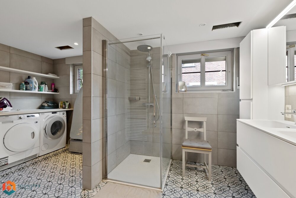 We betreden de woning via de inkomhal met aparte gastentoilet. De leefruimte geniet van veel lichtinval door de vele raampartijen en kunt u inrichten met een gezellige zithoek, voorzien van een gezellige haard en aparte eetplaats. Van hieruit hebt u ook een mooi zicht op de leuke tuin. De ruime keuken is voorzien van de voornaamste toestellen. U beschikt verder op het gelijkvloers nog over een badkamer met inloopdouche , dubbele wastafel en aangrenzend praktische wasplaats. De inpandige garage van 9m2 geeft een extra troef. Tot slot geeft de extra ruimte op de gelijkvloers nog mogelijkheid tot slaapkamer of uitbreiding van de woonkamer. De nachthal op de eerste verdieping geeft ons toegang tot de 3 slaapkamers, aparte bureau/hobby ruimte, een inloopdressing en een badkamer, voorzien van douchebad, wastafel en toilet. De zolder is ruim en wordt gebruikt als extra opbergruimte. In de leuke tuin kunt u steeds in alle rust en privacy genieten van het mooie weer. Vooraan de woning beschikt u over voldoende parkeermogelijkheden.