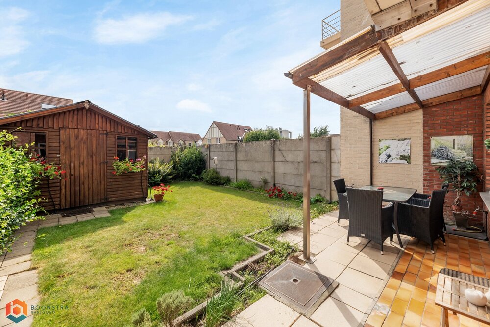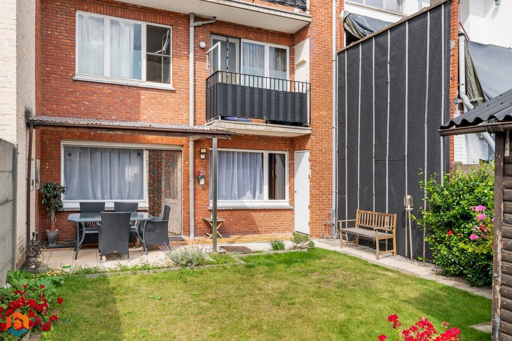Het appartement op de gelijkvloers is bereikbaar via de gemeenschappelijke inkomhal. De lichtrijke leefruimte kan u inrichten met een gezellige zithoek en een aparte eetplaats. Aangrenzend bevindt zich de keuken met aanpalend een ruime inpandige garage met aansluiting voor wasmachine. Daarnaast beschikt dit appartement over een slaapkamer, een praktische berging en een badkamer met douche, toilet en lavabo. Vanuit de leefruimte is er rechtstreekse toegang tot de zuid-georiënteerde tuin met tuinhuis, waar u in alle rust en privacy kan genieten van het mooie weer.