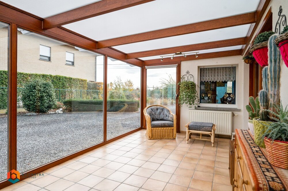 We betreden de woning via de inkomhal. De gezellige leefruimte, uitgerust met een gaskachel biedt plaats voor een zithoek en een aparte eetruimte. Aansluitend bevindt zich de keuken, voorzien van de voornaamste toestellen. Via de keuken bereiken we de veranda en tuin waar u in alle rust en privacy van het mooie weer te genieten. Op het gelijkvloers bevinden zich verder nog een apart gastentoilet en een badkamer met lavabo en douche. Via de nachthal op de eerste verdieping bereikt u de drie slaapkamers. Tenslotte beschikt de woning over een kelder, een buitenberging en een garage. Tevens geniet u naast de woning over voldoende parkeergelegenheid.