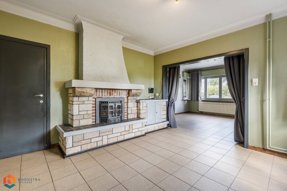We betreden de woning via de inkomhal. De lichtrijke leefruimte kunt u inrichten met een gezellige zithoek en aparte eetplaats langs de haard. Aangrenzend bevindt zich de keuken, dewelke voorzien is van de voornaamste toestellen. Via de hal bereikt u verder nog de ruime berging / wasplaats met toilet.