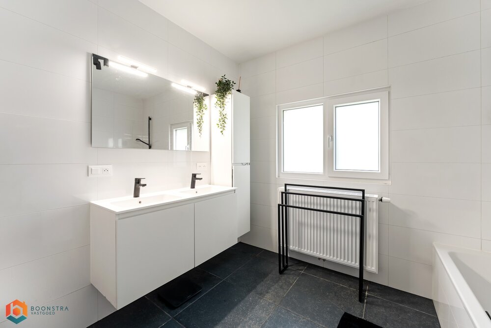 We betreden de woning via de leefruimte, deze geniet van veel lichtinval door de grote raampartijen en kunt u inrichten met een gezellige zithoek. Aangrenzend aan de leefruimte bevindt zich de de moderne open keuken voorzien van de voornaamste toestellen. Het gelijkvloers omvat verder nog een een berging/wasruimte, de badkamer voorzien van dubbele lavabo en bad/douche en een apart toilet. Via de achterdeur komen we terecht in de ruime volledig omheinde tuin waar u in alle rust kan genieten van het mooie weer. De nachthal op de eerste verdieping geeft ons toegang tot 3 slaapkamers en een apart toilet.