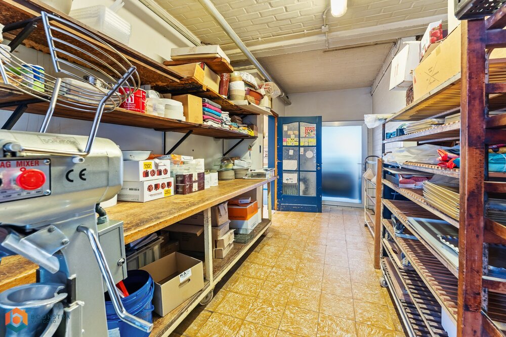Op het gelijkvloers beschikt u over een handelsruimte die verschillende mogelijkheden biedt en geschikt is voor verschillende doeleinden. Achteraan bevindt zich nog een praktische opbergruimte/werkplaats die momenteel is ingericht als bakkerij en waar u ook een keuken kunt inrichten. Aangrenzend vinden we een appartement voorzien van 2 slpkrs, badkamer, keuken en woonplaats.