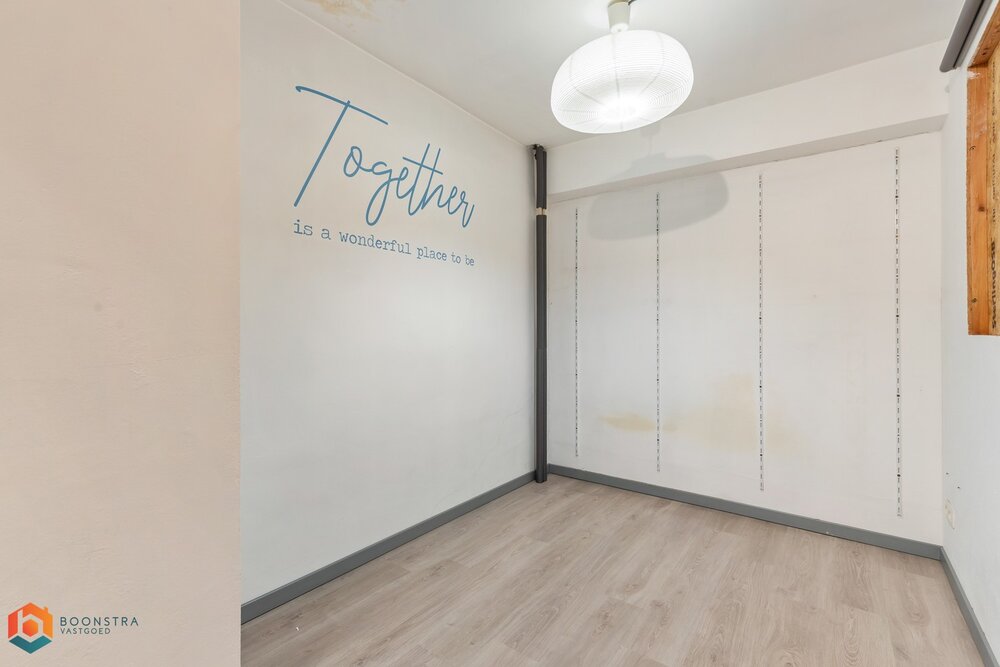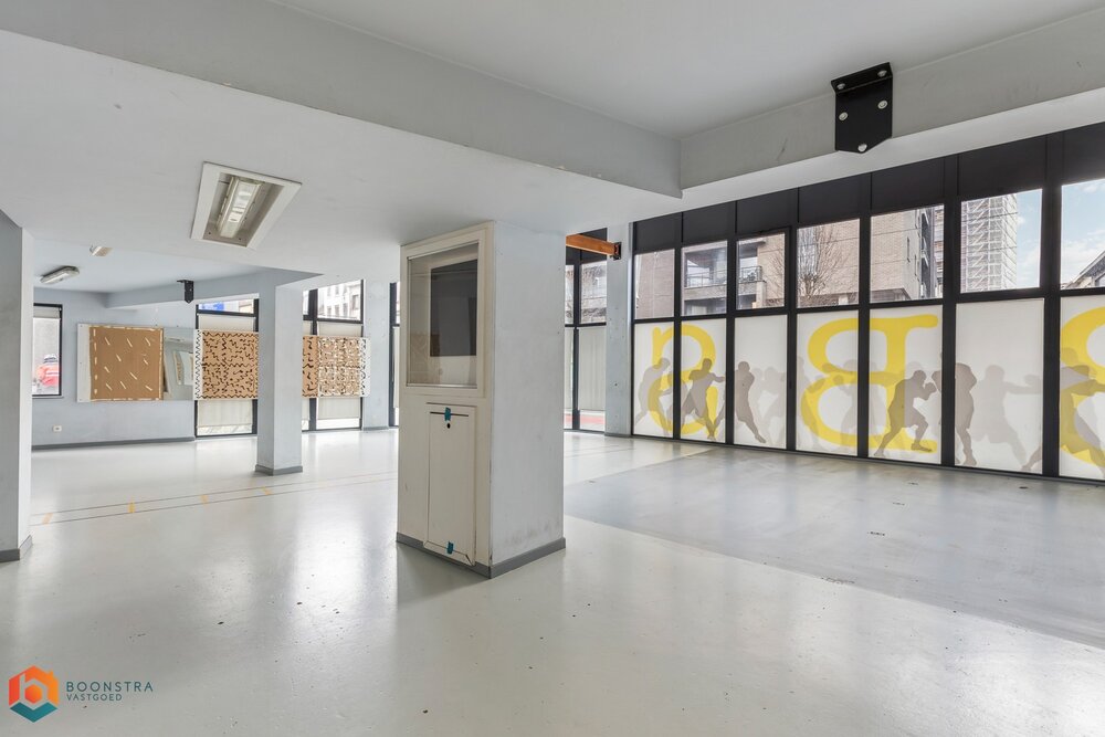 Het handelsgelijkvloers bevindt zich onderaan in een appartementsgebouw en geniet van een eigen inkom. Momenteel is de handelsruimte ingericht als boks-accommodatie. U beschikt vooraan over een sportruimte met balie. Achterliggend kan u twee Sphinx-doucheruimtes, een vrouwen- en mannentoilet, een kleedkamer met sauna en een ruime gemeenschappelijke kleedruimte terugvinden. Aangrenzend aan deze laatste ruimte beschikt u over een royale fitness-ruimte met aangrenzend een garage. Beide beschikken over hoge, sectionale poorten. Deze ruimten kunnen afgesloten worden met stalen deuren. Op het gelijkvloers geniet u tenslotte nog van een keuken met ingebouwde kasten. Van hieruit kan u via de vaste trap naar de eerste verdieping. De nachthal geeft u toegang tot een ruim slaapvertrek en een leefruimte met uitzicht op de onderliggende fitness-ruimte. Deze kan u inrichten met een gezellige zithoek.