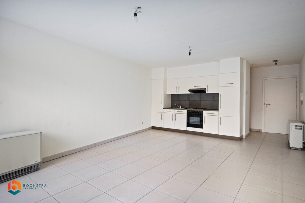 We betreden het appartement via de inkomhal. De leefruimte kan u inrichten met een zithoek en aparte eetplaats. Deze ruimte geniet van veel lichtinval dankzij het grote schuifraam, dat toegang biedt tot het terras. Hier kan u steeds in alle rust en privacy genieten van het mooie weer. De open keuken is voorzien van de voornaamste toestellen. Verder beschikt het appartement nog over een berging/wasruimte, slaapkamer en een badkamer, uitgerust met douchebad, lavabo en toilet.
