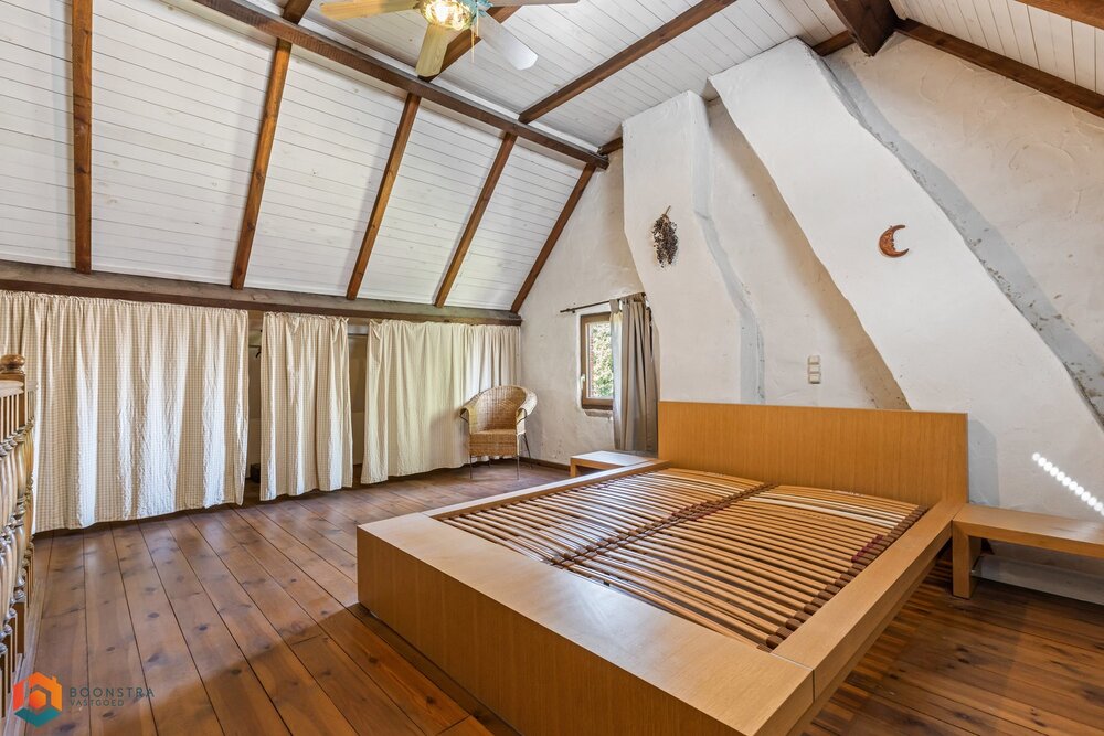 We betreden de woning via de inkomhal aan de zijkant. De woonkamer aan de voorzijde van het huis kan u inrichten met een gezellige zithoek en een aparte eetplaats. De ruime keuken is voorzien van de voornaamste toestellen. Een gezellige en lichtrijke zitplaats aan de achterzijde van de woning geeft verder uit op het zuidwest georiënteerde terras. In de charmante tuin kunt u steeds in alle rust en privacy genieten van het mooie weer. Een tuinhuis biedt u daarbij de nodige opbergruimte voor uw tuinspullen en/of fietsen. Verder beschikt het gelijkvloers nog over een praktische opbergruimte, een wasplaats en een ruime badkamer uitgerust met douchebad, dubbele lavabo en toilet. Via de traphal bereiken we de eerste verdieping waar we 2 ruime slaapkamers terugvinden. Op de tweede verdieping bevindt zich nog een derde slaapkamer.