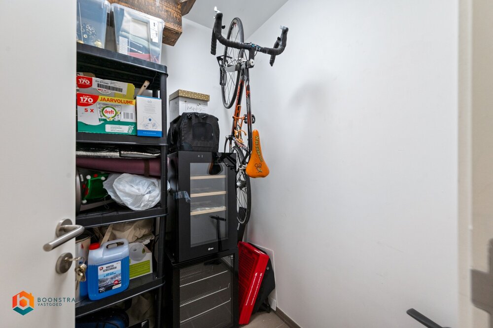 Dit moderne appartement is gelegen op de tweede verdieping van een kleinschalig gebouw. We betreden het appartement via de inkomhal met apart gastentoilet en vestiaire. De lichtrijke leefruimte kan u inrichten met een gezellige zithoek en eetplaats. De open keuken is mooi geïntegreerd in het geheel en is voorzien van de meest kwalitatieve toestellen. Vanuit de leefruimte heeft u toegang tot het zuidgericht terras, waar u steeds in alle rust en privacy kan genieten van het mooie weer. De hal geeft ons verder toegang tot 2 slaapkamers (waarvan één momenteel ingericht is als dressing), een berging en een badkamer, uitgerust met lavabo en inloopdouche. Het appartement beschikt tenslotte over een parkeerplaats en berging.