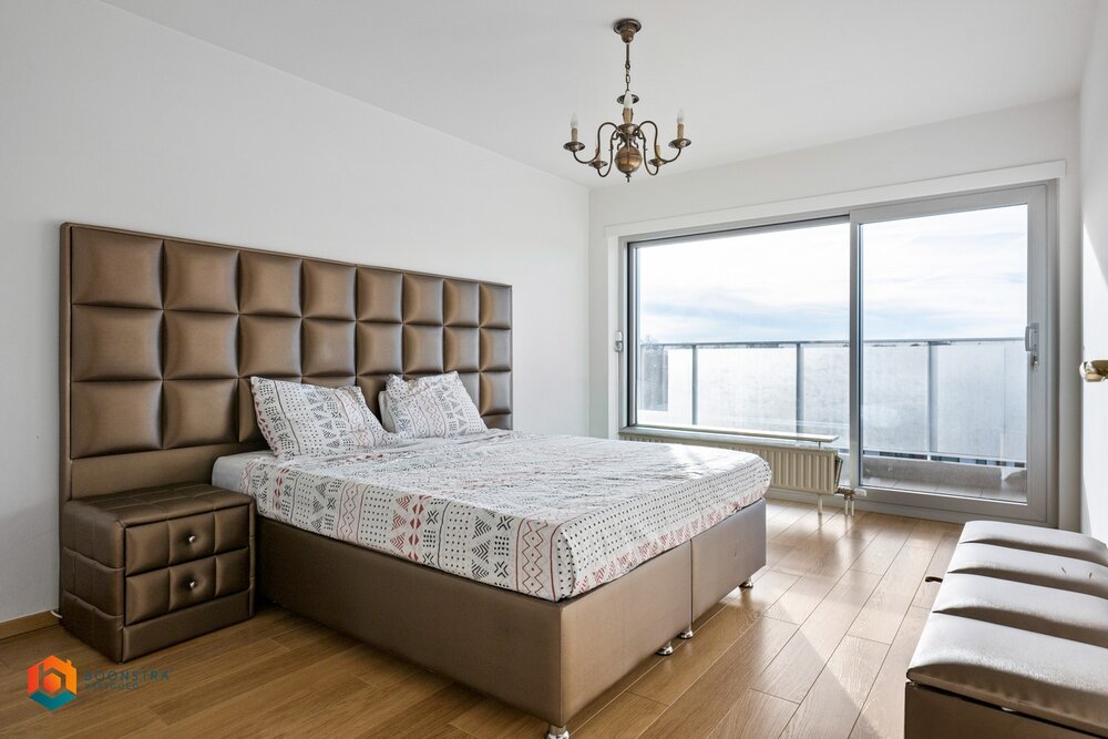 We betreden het appartement via de ruime inkomhal. In de leefruimte met zicht over stad Mechelen kunt u een eetplaats en gezellige zithoek inrichten. De keuken is volledig geïnstalleerd en voorzien van de voornaamste toestellen. Verder geeft de nachthal, voorzien van ingemaakte kasten, ons toegang tot een gastentoilet, 2 slaapkamers en de badkamer voorzien van lavabo, douche en toilet. Via één van de slaapkamers bereiken we het terras aan de achterzijde. Deze kan kamer kan opgesplitst worden in 2 slaapkamers om een totaal van 3 slaapkamers te bereiken. Er is ook een bergruimte aanwezig. Ten slotte is er de mogelijkheid om een ondergrondse staanplaats bij aan te kopen voor €25.000.