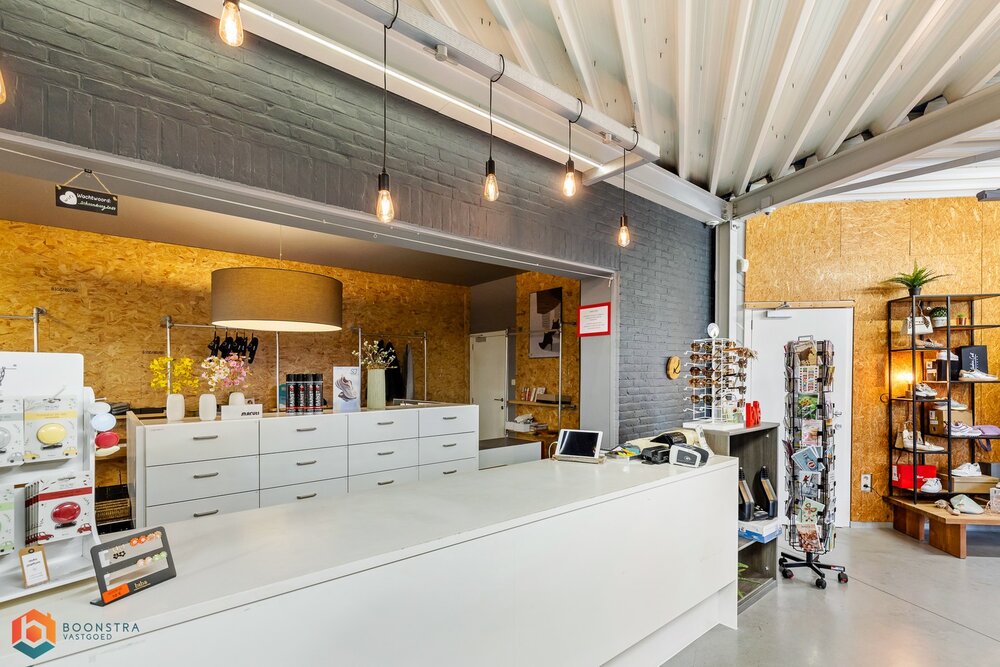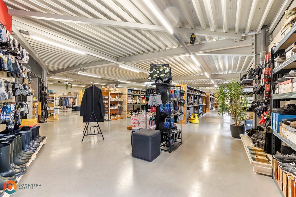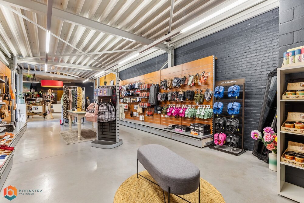 Het pand bestaat uit een combinatie van een oude en een nieuwe sectie, met circa 400 m² winkelruimte en ongeveer 500 m² magazijnruimte. De magazijnruimte is voorzien van een grote sectionale poort, wat ideaal is voor het in- en uitladen van goederen. De winkelruimte biedt voldoende ruimte voor commerciële doeleinden zoals detailhandel, een showroom, of ander zakelijk gebruik. De eerste verdieping in het centrale woongedeelte, dat nu als opslagruimte wordt gebruikt, maar oorspronkelijk bestond uit 5 slaapkamers, een badkamer en een keuken – kan eenvoudig worden ingericht naar uw wensen. Een appartement behoort hier tot de mogelijkheden.