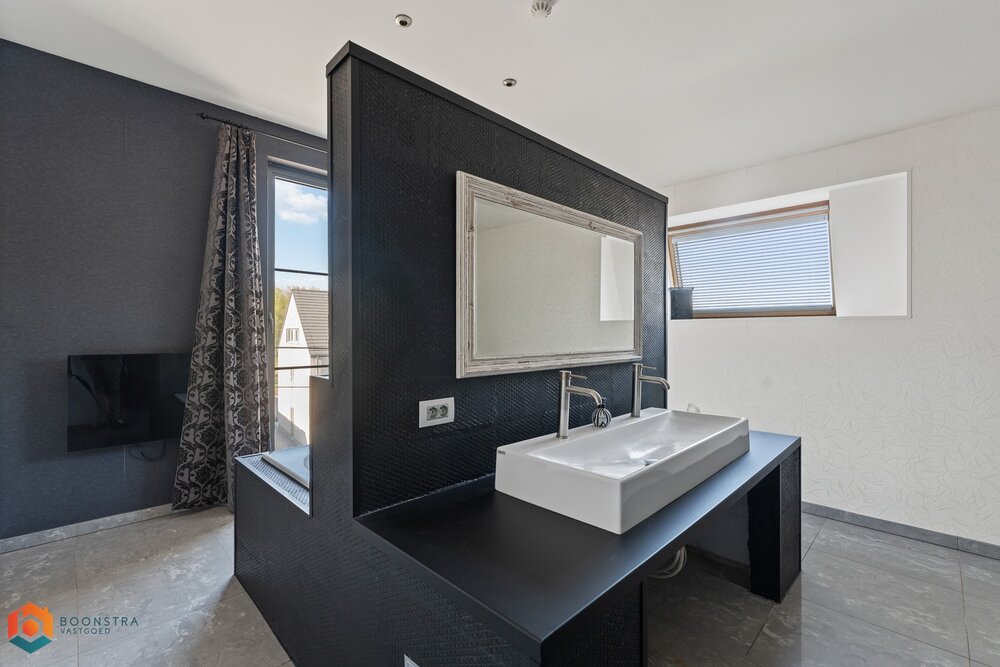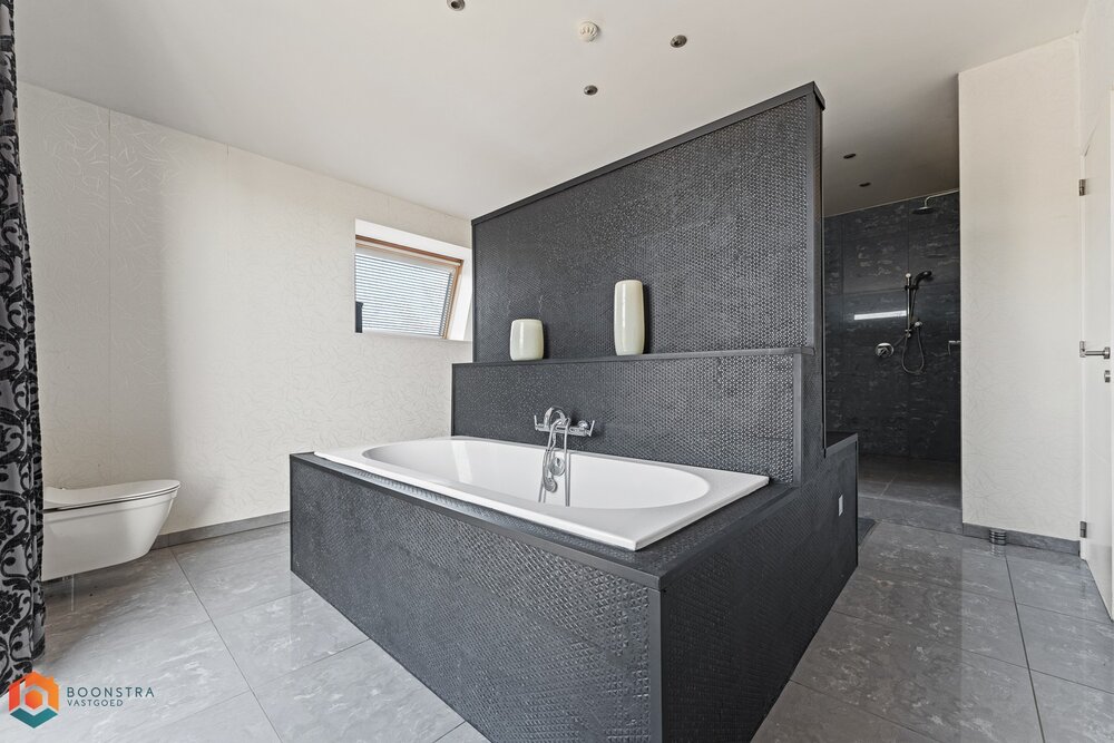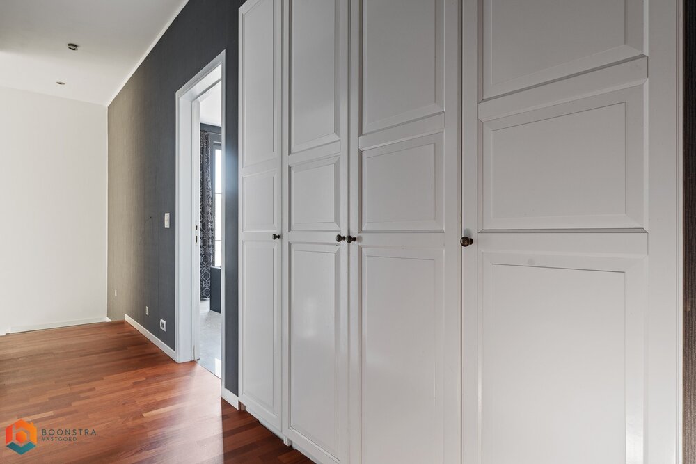 Op de tweede verdieping vinden we een nachthal met ingemaakte kasten, een uitzonderlijk ruime badkamer met inloopdouche, groot ligbad, toilet en dubbele lavabo. Indien gewenst kan deze badkamer eenvoudig opgesplitst worden in twee aparte badkamers.