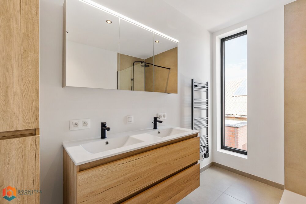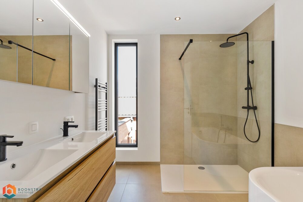 We betreden de woning via de inkomhal met apart gastentoilet. In de prachtige leefruimte geniet u van veel lichtinval door de grote raampartijen. Deze kunt u inrichten met een gezellige zithoek en een aparte eetplaats. De open keuken werd mooi geïntegreerd in het geheel en voorzien van uiterst kwalitatieve toestellen. Zowel vanuit de keuken als de leefruimte kan u genieten van een open zicht op de zuidwest georiënteerde tuin. Aangrenzend aan de keuken bevindt zich nog een aparte berging/wasplaats inclusief technische ruimte. U kunt de woning ook rechtstreeks langs hier betreden. De nachthal op de eerste verdieping geeft ons toegang tot 4 ruime slaapkamers, een apart toilet en de badkamer, voorzien van inloopdouche, ligbad en een dubbele lavabo.