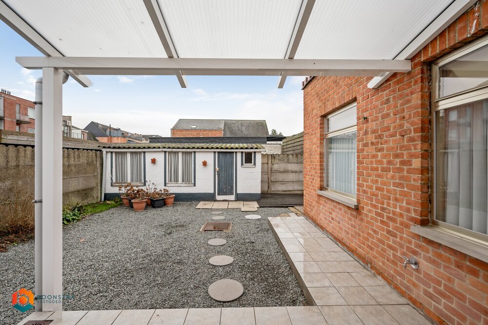 We betreden de woning via de inkomhal met vestiaire. De leefruimte kan u inrichten met een gezellige zithoek en aparte eetplaats. Aansluitend bevindt zich de veranda met uitzicht op de tuin. Zowel via de leefruimte als de veranda komen we in de keuken, dewelke voorzien is van de primaire toestellen. Via de keuken betreden we de ruime berging met toilet. De berging geeft toegang tot de tuin met tuinhuis waar u steeds kan genieten van de rust en het mooie weer. Verder beschikt het gelijkvloers nog over een inpandige garage alsook een eerste slaapkamer. Via de nachthal op de eerste verdieping hebt u toegang tot nog 2 slaapkamers alsook de badkamer, voorzien van lavabo, wc en douchebad.