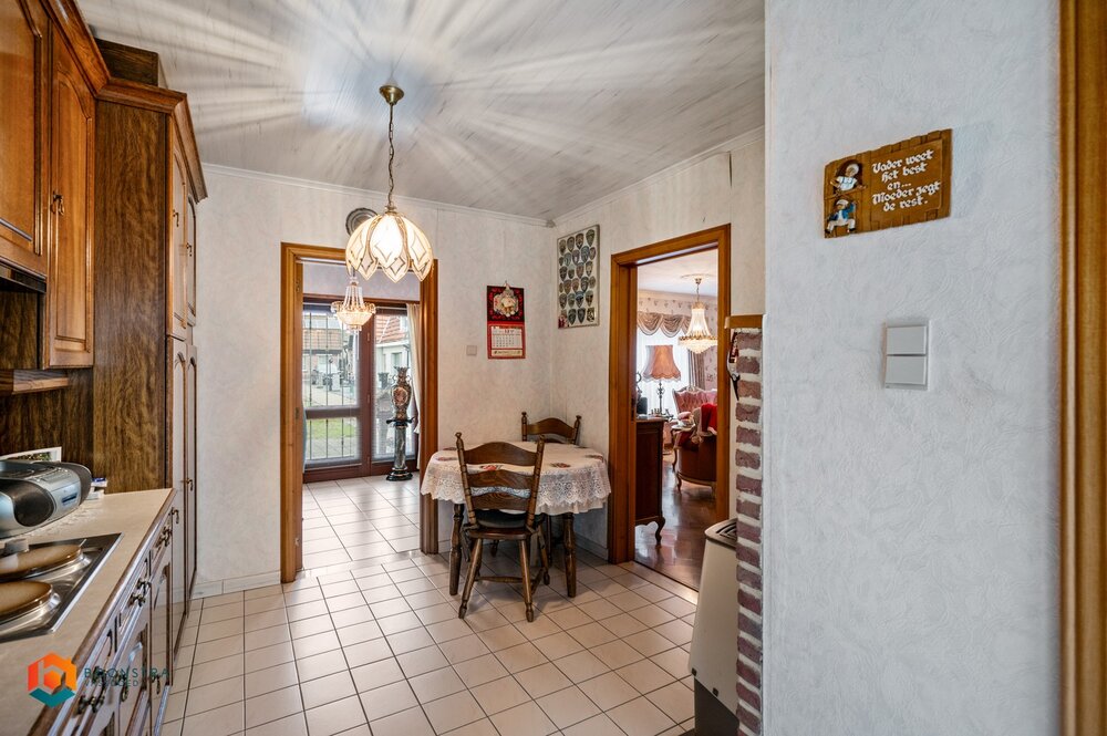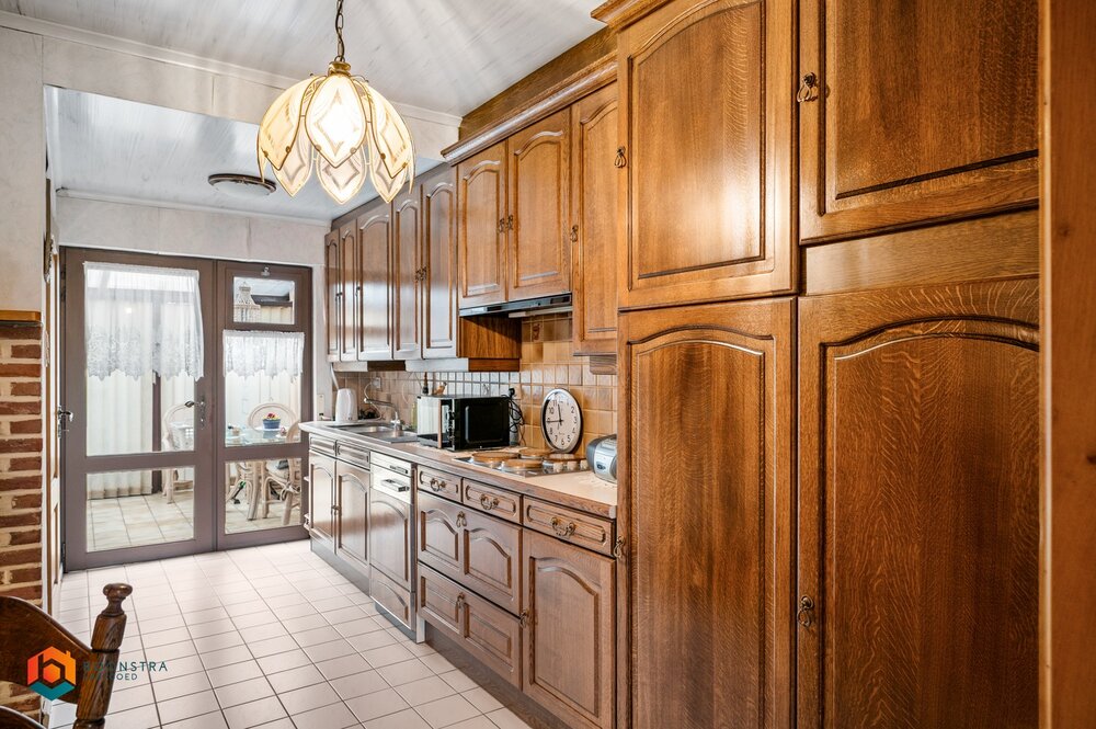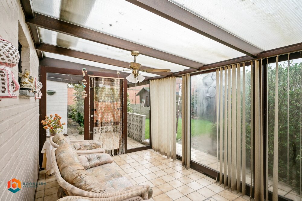 We betreden de woning via de inkomhal met vestiaire. De lichtrijke leefruimte kan u inrichten met een gezellige zithoek en een aparte eetplaats. Aangrenzend bevindt zich de keuken, de welke mooi geïntegreerd is in het geheel en voorzien van de voornaamste toestellen. Van hieruit bereikt u de veranda met toegang tot de zuidwest georiënteerde tuin met overdekt terras, waar u steeds in alle rust en privacy kan genieten van het mooie weer. Verder omvat het gelijkvloers nog een badkamer met toilet, ligbad en lavabo, een praktische wasplaats en een inpandige garage. Tot slot bereiken we via de nachthal op de eerste verdieping 2 ruime slaapkamers.