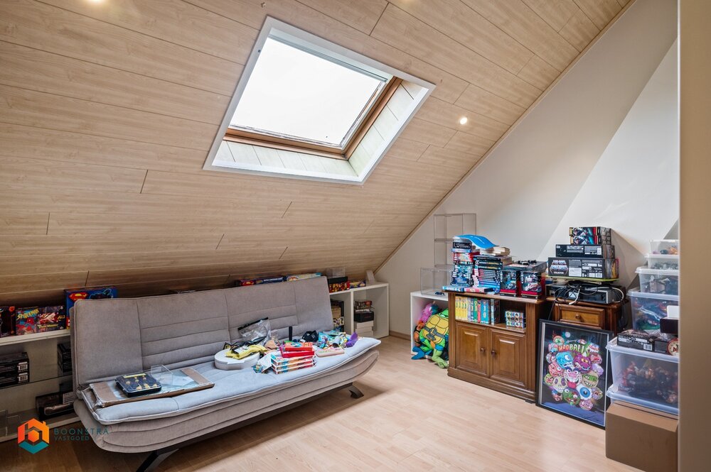 We betreden de woning via de inkomhal met vestiaire. De ruime leefruimte met uitzicht op de tuin kan u inrichten met een gezellige zithoek en een aparte eetplaats. De open keuken werd mooi geïntegreerd in het geheel en is voorzien van kwalitatieve toestellen. In de west georiënteerde tuin kunt u steeds in alle rust en privacy genieten van het mooie weer. Verder omvat het gelijkvloers nog een praktische badkamer met inloopdouche, ligbad, lavabo en toilet. De nachthal op de eerste verdieping geeft toegang tot 2 ruime slaapkamers. Op de tweede verdieping bevinden zich nog 2 slaapkamers met toegang tot een mezzanine. Tot slot beschikt deze woning nog over kelder, een conforme elektrische keuring en biedt deze veel mogelijkheden.