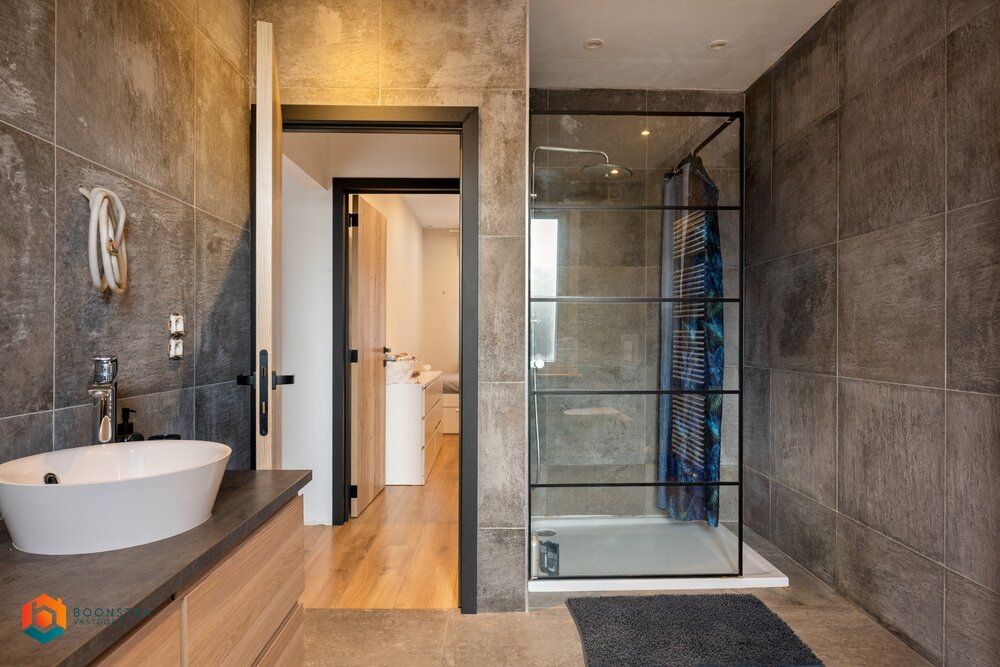 We betreden deze ruime woning via de inkomhal met vestiaire en toilet. De open leefruimte baadt in het licht dankzij de vele raampartijen en kan worden ingericht met een gezellige zithoek en een aparte eetplaats. De open keuken is harmonieus geïntegreerd in het geheel, uitgerust met uiterst kwalitatieve toestellen en met zicht op de tuin. Via de hal bereikt u een praktische berging/wasplaats. De nachthal op de eerste verdieping geeft toegang tot drie volwaardige slaapkamers en de badkamer, voorzien van een inloopdouche, dubbele lavabo en toilet. Op de tweede verdieping bevindt zich een indrukwekkend ruime vierde slaapkamer met inloopkast. In de gunstig georiënteerde tuin met terras geniet u in alle rust en privacy van het mooie weer. Tot slot beschikt deze woning ook over een kelder.