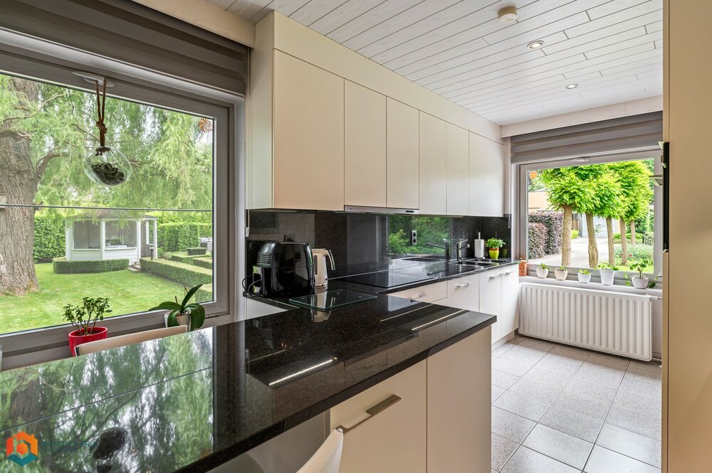 We betreden de woning via de inkomhal. De leefruimte geniet van veel lichtinval door de vele raampartijen en kunt u inrichten met een gezellige zithoek, voorzien van een gezellige houtkachel en aparte eetplaats. Van hieruit hebt u ook een mooi zicht op de leuke tuin. Aangrenzend bevindt zich de ruime keuken is voorzien van kwalitatieve toestellen. U beschikt verder op het gelijkvloers over een apart toilet, de wasplaats/berging, 2 slaapkamers, een bureau (dewelke kan dienen als extra slaapkamer) en de badkamer voorzien van inloopdouche en lavabo. De nachthal op de eerste verdieping geeft ons toegang tot de 2 ruime slaapkamers, waarvan 1 kamer met ensuite badkamer, voorzien van een toilet en douchekabine. In de leuke tuin kunt u steeds in alle rust en privacy genieten van het mooie weer. Langs de woning en in de garage beschikt u over voldoende parkeermogelijkheden.