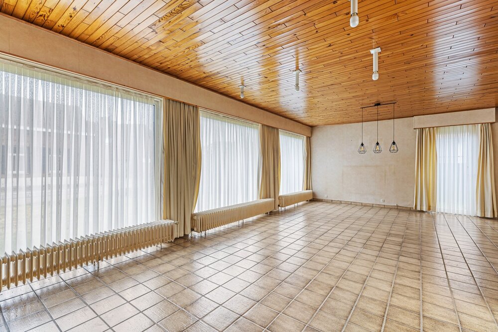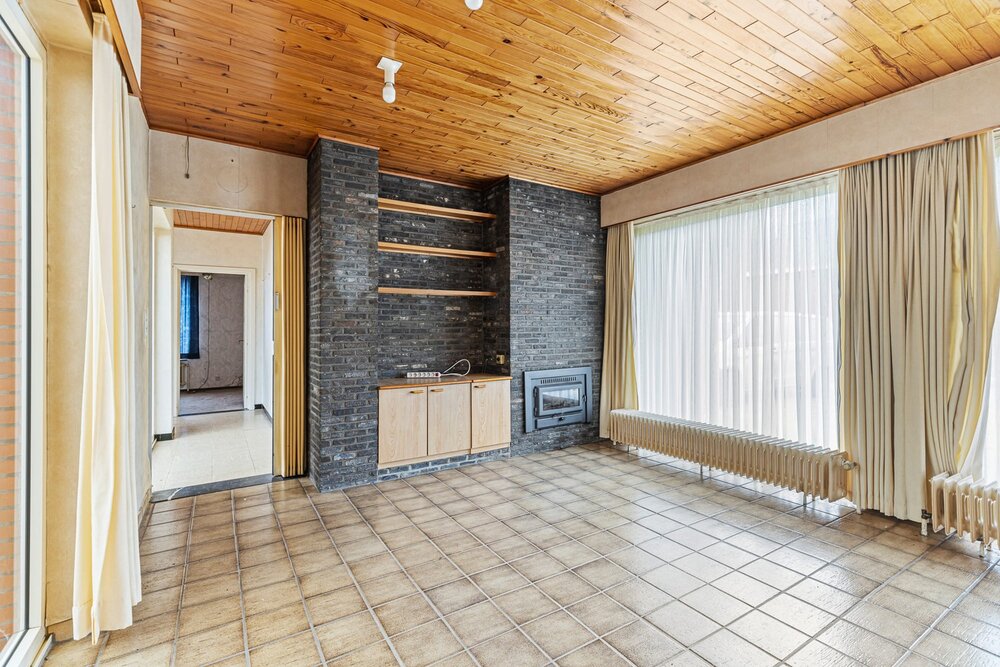 We betreden de ruime woning via de inkomhal met apart gastentoilet. De lichtrijke leefruimte met haard kan u inrichten met een gezellige zithoek en een aparte eetplaats. Aangrenzend aan de leefruimte bevindt zich de veranda met zicht op de tuin en de keuken, voorzien van de voornaamste toestellen. Via de keuken bereiken we de inpandige garage, die u kunt gebruiken voor verschillende doeleinden. De nachthal biedt ons verder toegang tot 3 ruime slaapkamers en de badkamer, uitgerust met lavabo en douchebad. In de ruime tuin kunt u steeds in alle rust en privacy genieten van het mooie weer. Tot slot is de woning ook voorzien van een kelder.