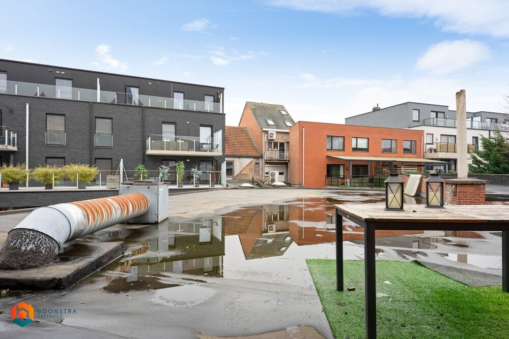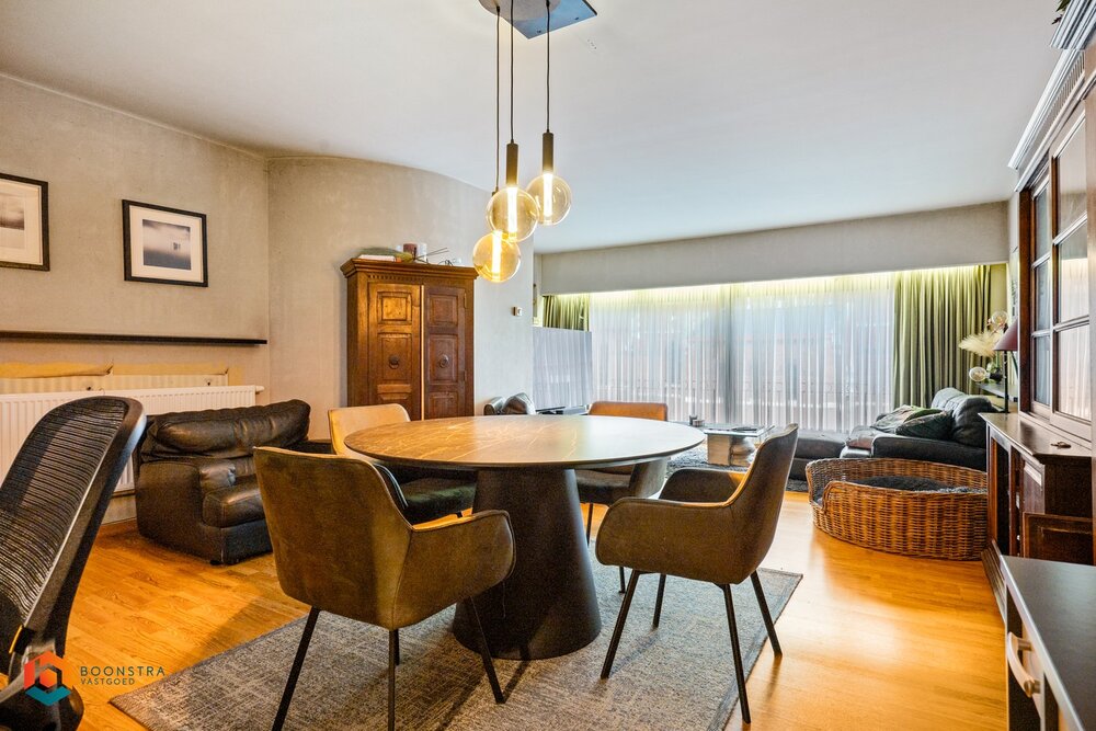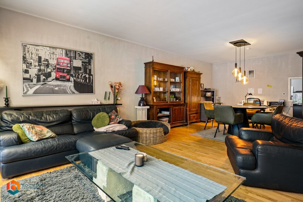 Via een aparte hal bereikt u de eerste verdieping, waar het bovenliggende appartement zich bevindt. Dit appartement beschikt over een eigen inkomhal met apart gastentoilet en vestiaire. De hal leidt naar een ruime leefruimte met plaats voor een gezellige zithoek en aparte eetruimte, evenals een afzonderlijke keuken voorzien van de voornaamste toestellen. Daarnaast zijn er twee volwaardige slaapkamers en een badkamer uitgerust met dubbele lavabo en douchebad. Tot slot beschikt het pand over een ruime zolder en zijn er voldoende parkeermogelijkheden zowel bij het handelspand als op het nabijgelegen kerkplein.