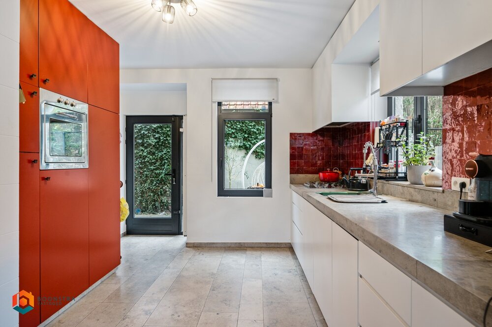 We betreden de woonst via de inkomhal met apart gastentoilet. De open leefruimte, die u kan inrichten met een gezellige zithoek en een aparte eetplaats, geniet van een fantastische lichtinval door de vele raampartijen. Van hieruit heeft u rechtstreeks toegang tot het terras en kan u genieten van een prachtig zicht over de volledig aangelegde en omheinde tuin. De woonkamer loopt naadloos over in de open keuken, dewelke is voorzien van de voornaamste, kwalitatieve toestellen. De nachthal op de eerste verdieping geeft toegang tot drie slaapkamers (waarvan eentje met dressing) en een vernieuwde badkamer, uitgerust met lavabo, inloopdouche en toilet. Op de tweede verdieping bevindt zich nog een ruime vierde slaapkamer. Tenslotte beschikt het hoofdgebouw in de kelderverdieping over een polyvalente ruimte die momenteel dienst doet als kantoor, maar eveneens gebruikt kan worden als atelier, extra slaapkamer of gewoon stockageruimte. Verder bevindt zich hier nog een handige berging en wasplaats.