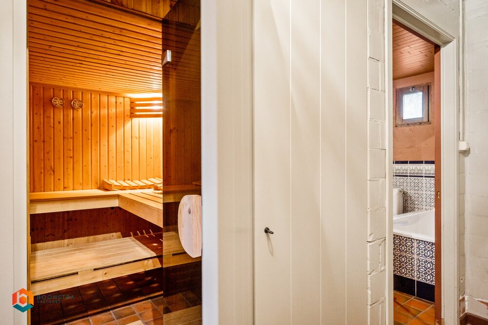 Het bijgebouw naast de woning is voorzien van een woonkamer, badkamer, sauna, wasplaats en slaapkamer en biedt u dus tal van mogelijkheden qua invulling. In de sfeervolle tuin met meerdere terrassen kan u genieten van de verwarmde zwemvijver en een jacuzzi. Een ideale plaats om in alle privacy met familie en vrienden te verpozen en te genieten van het mooie weer! Verder beschikt dit domein over voldoende parkeermogelijkheden en is er nog een ruime garage met dubbele elektrische poorten aanwezig die plaats biedt aan 2 wagens. Tot slot is deze woning voorzien van zonnepanelen en een laadpaal. De elektrische installatie is conform.
