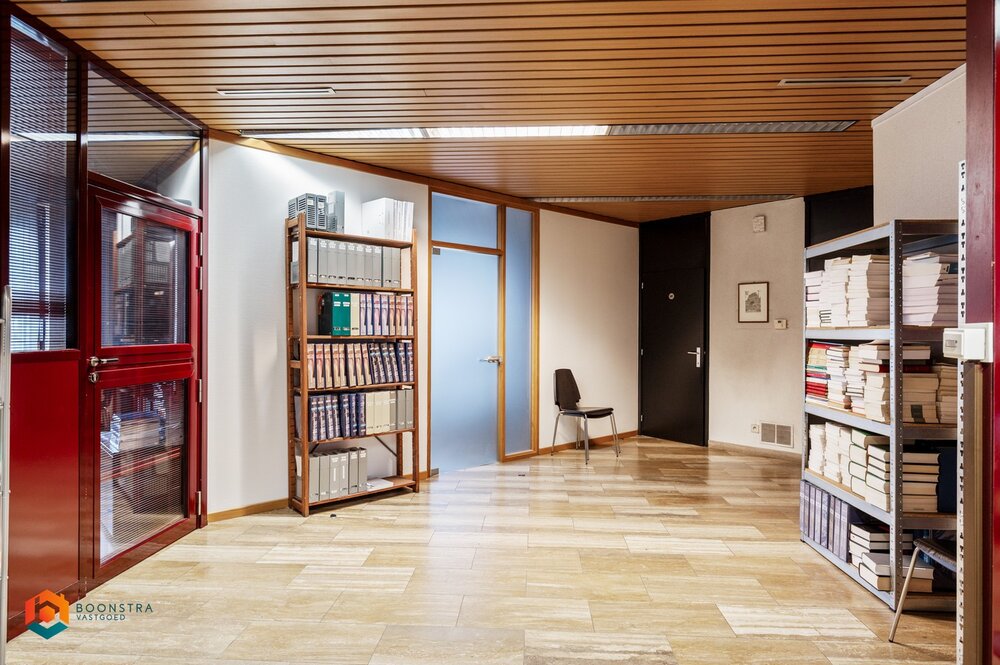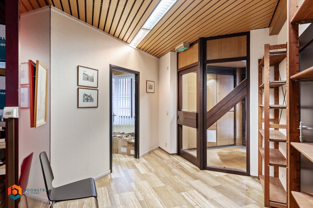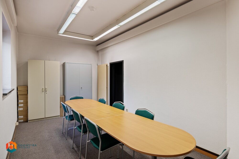 U betreedt het pand via een ruim onthaal, ideaal om in te richten als vestiaire en/of wachtzaal. Het gelijkvloers omvat een vergaderzaal, meerdere bureauruimtes, een printerruimte, sanitair en een stookplaats.