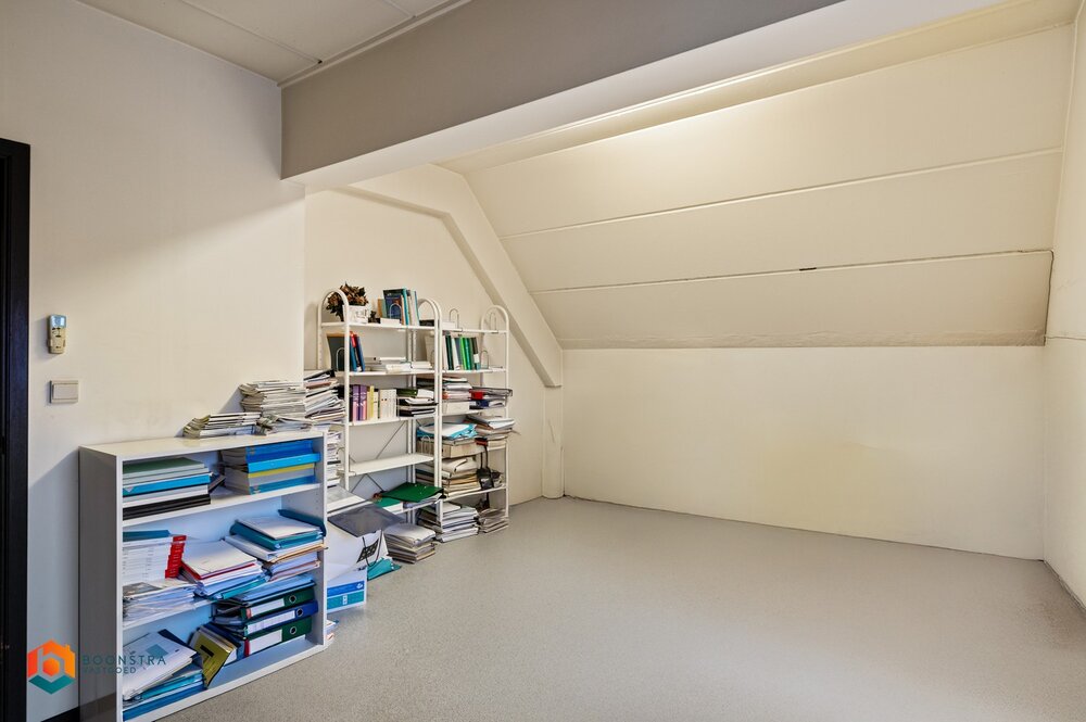 De eerste verdieping biedt een polyvalente, flexibel in te delen ruimte. Deze is momenteel ingericht met een keuken en eetzaal, een vergaderzaal en twee zolderruimtes die perfect geschikt zijn als opslag.