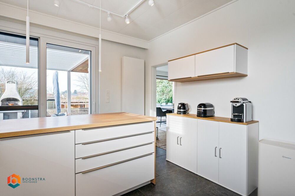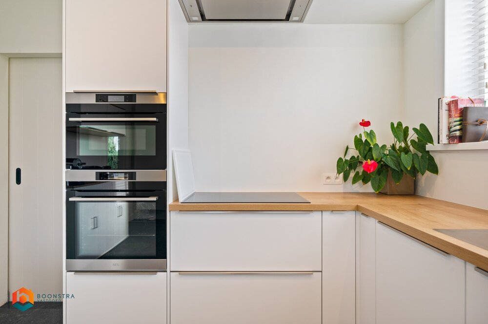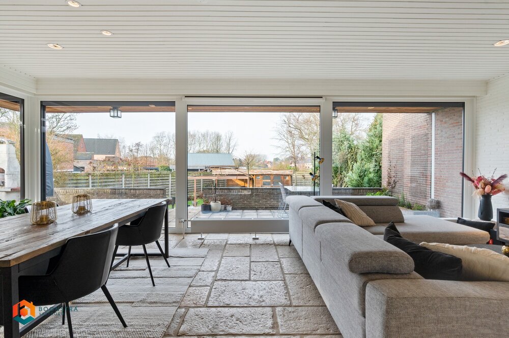 Aansluitend bevindt zich de volledig vernieuwde keuken, uitgerust met kwalitatieve toestellen en een groot schuifraam dat binnen en buiten naadloos met elkaar verbindt. De tuin is volledig omheind en achteraan bevindt zich een sfeervol tuinhuis met overdekt terras, ideaal voor ontspanning in alle privacy.