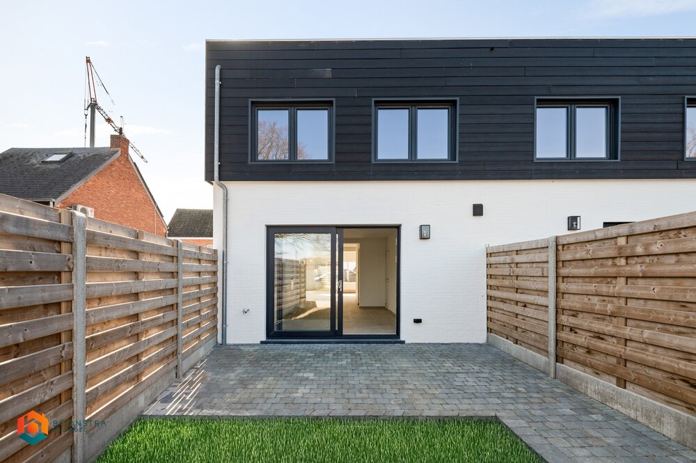We betreden de woning via de inkomhal, die ons leidt naar de lichtrijke leefruimte. Deze biedt plaats voor een gezellige zithoek en een aparte eetruimte. Aansluitend bevindt zich de open keuken, die mooi geïntegreerd is in het geheel en voorzien is van de voornaamste toestellen. Het gelijkvloers beschikt verder nog over een ruime wasplaats/berging en een apart toilet. De nachthal op de eerste verdieping geeft ons toegang tot drie slaapkamers en de badkamer uitgerust met een inloopdouche, lavabo en toilet. Op de nachthal heeft u de mogelijkheid nog een extra bureauruimte in te richten. Op het terras met tuin kunt u steeds in alle rust en privacy genieten van het mooie weer. De tuin is niet alleen bereikbaar via de woning zelf, maar ook langs de achterzijde. Een bijkomende troef is de aparte garage, die bereikbaar is via een oprit langs de woning. Achteraan het perceel bevindt zich nog een tweede tuin, gemeenschappelijk voor beide woningen. De EPC bedraagt slechts 188 en de elektriciteit is conform.