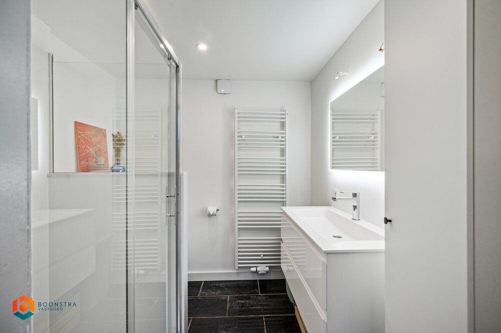 Via de inkomhal betreden we de woning. De gezellige leefruimte biedt voldoende plaats voor een comfortabele zithoek en een aparte eetruimte. Aansluitend bevindt zich de keuken, die harmonieus aansluit op het geheel en uitgerust is met kwalitatieve, moderne toestellen. Op het gelijkvloers vindt u bovendien een recent vernieuwde badkamer met lavabo, toilet en douche, evenals een praktische berging.