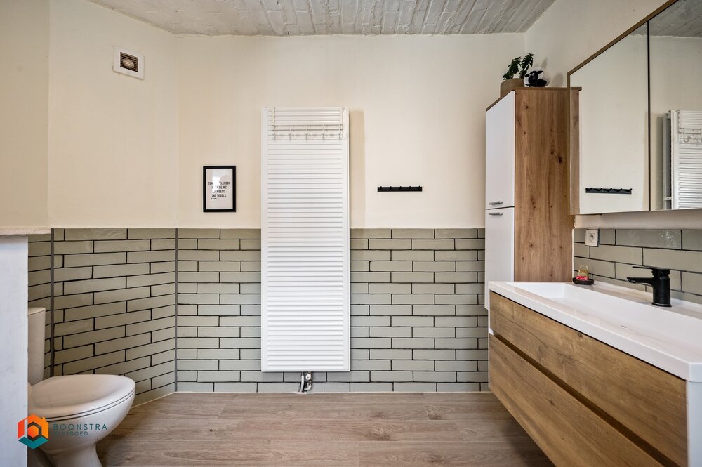 Via de trap bereiken we de bovenverdieping, waar zich de 3 slaapkamers bevinden. Hier vinden we ook de toegang tot de bergzolder. De woning is bovendien uitgerust met airco, wat zorgt voor een aangenaam en ideaal binnenklimaat, zowel in de zomer als in de winter.