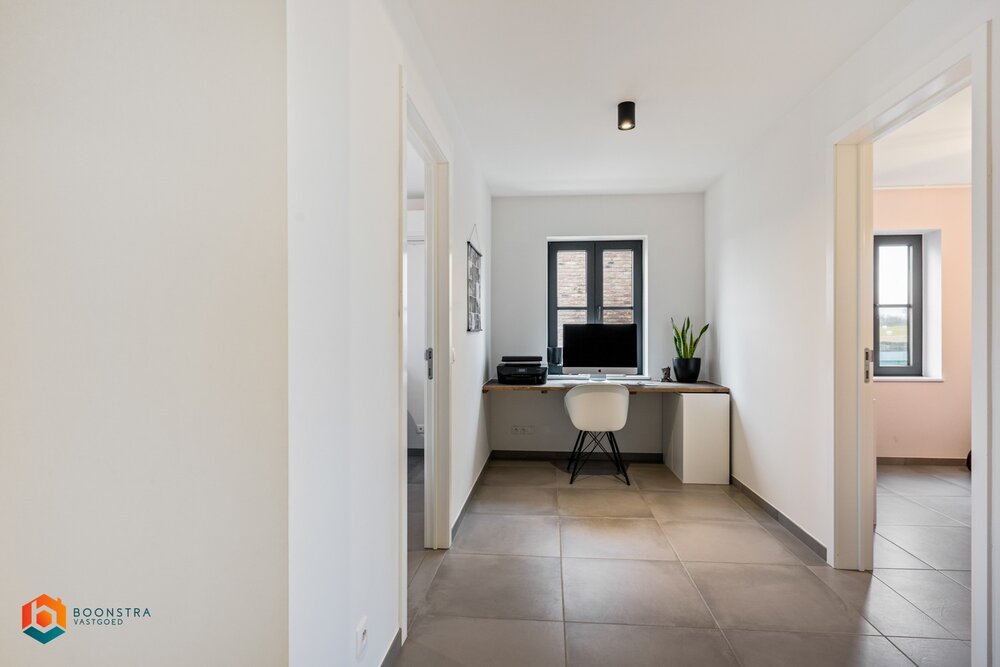 Op de eerste verdieping leidt de nachthal naar drie volwaardige slaapkamers. Verder vindt u hier een apart toilet en een stijlvolle badkamer, voorzien van een wastafel, ligbad en een ruime inloopdouche. Via een vaste trap bereiken we de afgewerkte zolderverdieping. Deze veelzijdige ruimte biedt tal van mogelijkheden en kan perfect ingericht worden als extra slaapkamer, bureauruimte of hobbykamer, volledig naar eigen wens.