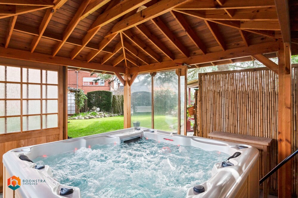Ten slotte beschikt u over een mooie, ruime tuin waar u steeds in alle rust en privacy kan genieten. Er is groot stuk overdekt wat u de mogelijkheid biedt om ook buiten het seizoen hier te vertoeven. Via de oprit die grenst aan de andere zijde van het straat beschikt u nog over een carport en garage.