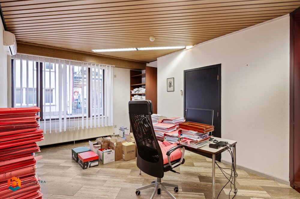 U betreedt het pand via een ruim onthaal, ideaal om in te richten als vestiaire en/of wachtzaal. Het gelijkvloers omvat een vergaderzaal, meerdere bureauruimtes, een printerruimte, sanitair en een stookplaats.