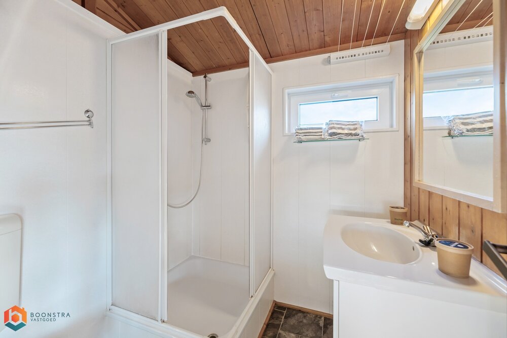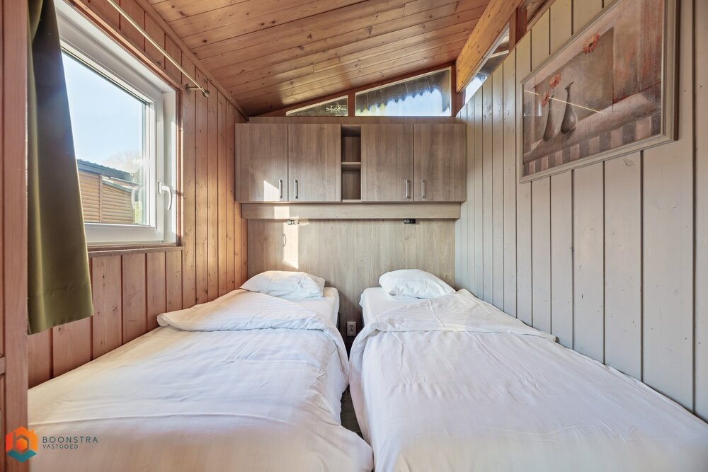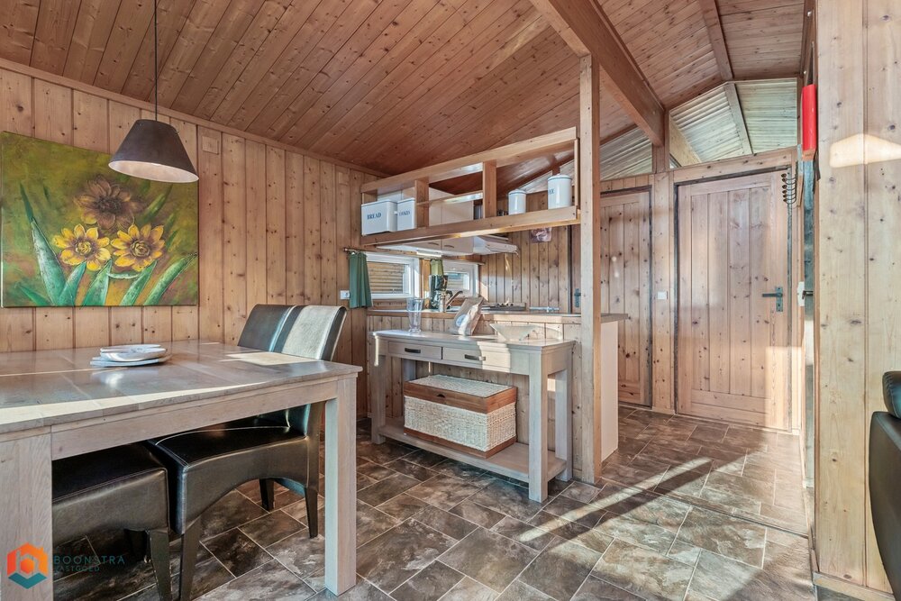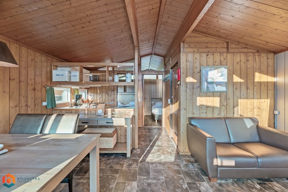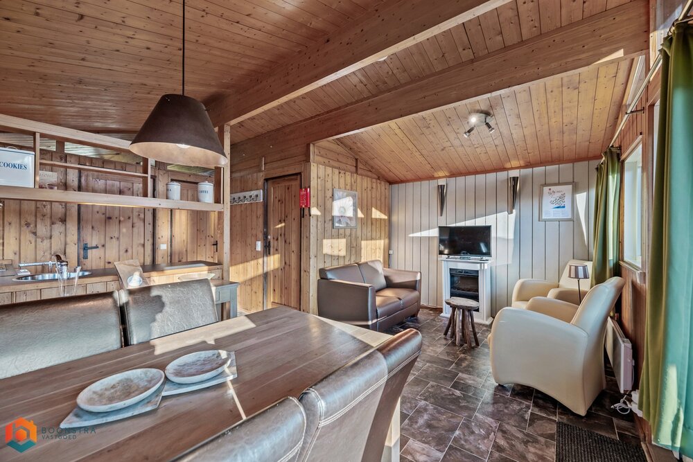 Dit vrijstaande vakantiehuisje is geschikt voor 4 personen. In de gezellige woonkamer vind je een zithoek met een sfeervolle haard en een televisie en is ook een eethoek ingericht. De open keuken is van alle gemakken voorzien, zoals een filterkoffiezetapparaat, een koelkast met vriesvak, een combimagnetron, een vaatwasser en een waterkoker. Het chalet omvat 2 slaapkamers en een badkamer met een douche, een wastafel en een toilet. Buiten is er een omheinde veranda met tuinmeubilair en er is plek om 1 auto te parkeren nabij het huisje.