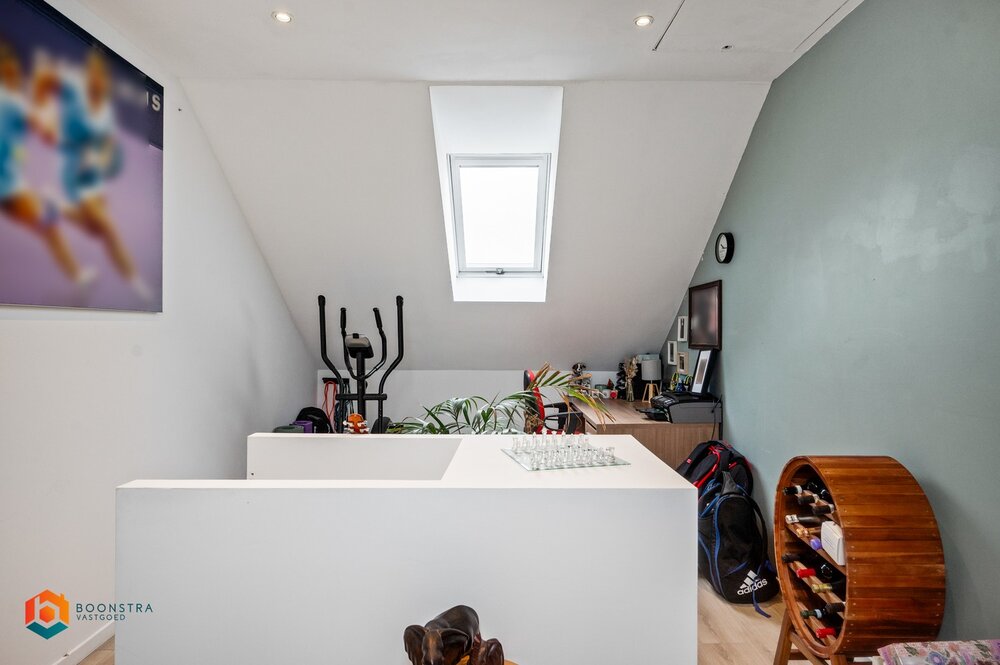 We betreden de woning via de inkomhal met vestiaire. De lichtrijke leefruimte kan u inrichten met een gezellige zithoek en een aparte eetplaats. Aangrenzend bevindt zich de open keuken die mooi werd geïntegreerd in het geheel en is voorzien van de voornaamste toestellen. Verder omvat het gelijkvloers nog een apart gastentoilet en een ingemaakte kast met opbergruimte en plaats voor wasmachine en droogkast. Via de keuken heeft u toegang tot de goed georiënteerde tuin waarin u steeds in alle rust en privacy kan genieten van het mooie weer. De nachthal op de eerste verdieping geeft toegang tot de master bedroom en de geheel vernieuwde badkamer met ligbad, lavabo, toilet en inloopdouche. Op de tweede verdieping bevindt er zich nog een ruime zolderkamer die, indien gewenst, opgedeeld zou kunnen worden in 2 slaapkamers. Tot slot beschikt deze woning over een conforme elektrische keuring, een gunstig E-peil en is ze asbestveilig.