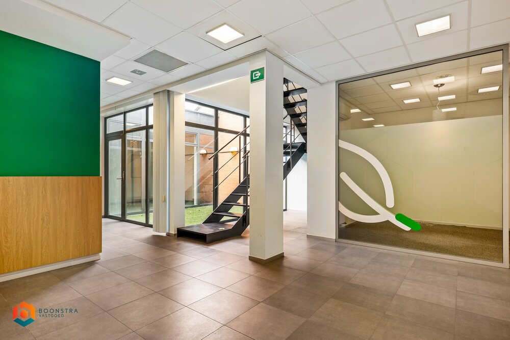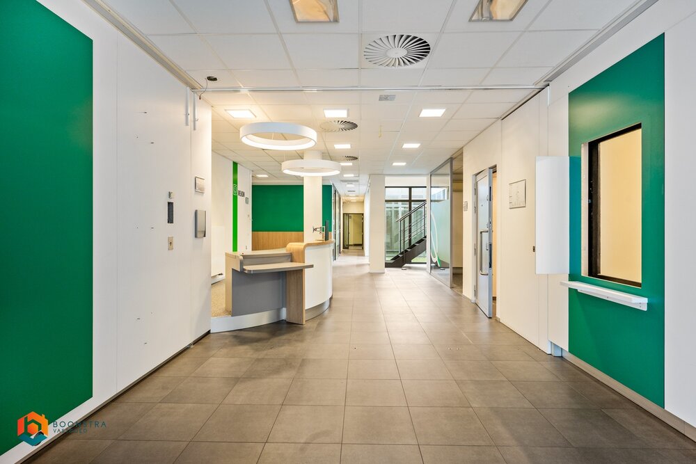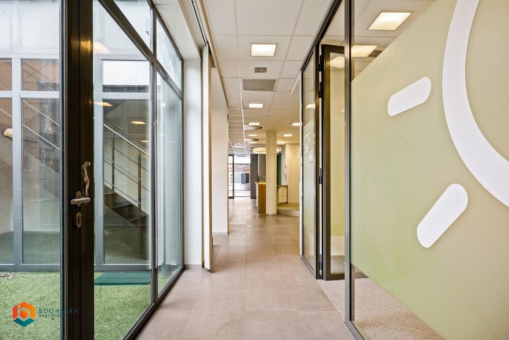 U betreedt het pand via een ruime inkomhal, perfect geschikt om in te richten als vestiaire en/of wachtzaal. Het gelijkvloers beschikt over diverse bureauruimtes, een keuken met eetruimte, sanitair en een praktische berging met plaats voor een printer.