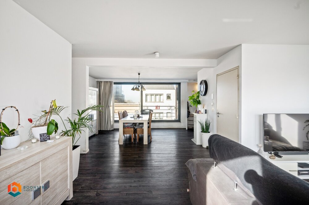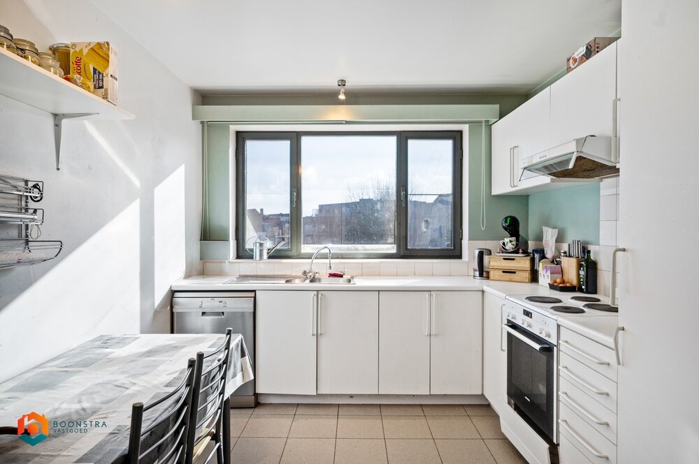 U betreedt het appartement via aparte inkomhal met vestiaire, een apart gastentoilet en een praktische berging. De lichtrijke leefruimte biedt tal van inrichtingsmogelijkheden voor een gezellige zithoek en een aangename eetplaats, die naadloos aansluit op het westgericht terras waar u in alle rust van de namiddag- en avondzon kunt genieten. De keuken is functioneel ingericht en voorzien van de voornaamste toestellen.