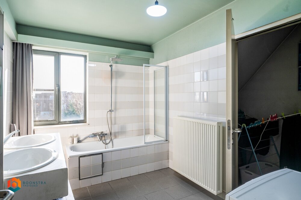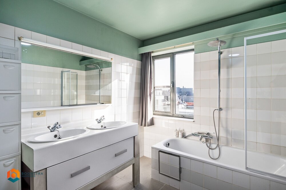 Op de derde verdieping leidt de nachthal naar drie volwaardige en ruime slaapkamers. De badkamer is compleet uitgerust met een dubbele lavabo, een douchebad en een extra bergruimte die perfect kan dienen als dressing. Daarnaast beschikt deze verdieping eveneens over een afzonderlijk toilet, wat het comfort van het appartement verder verhoogt.